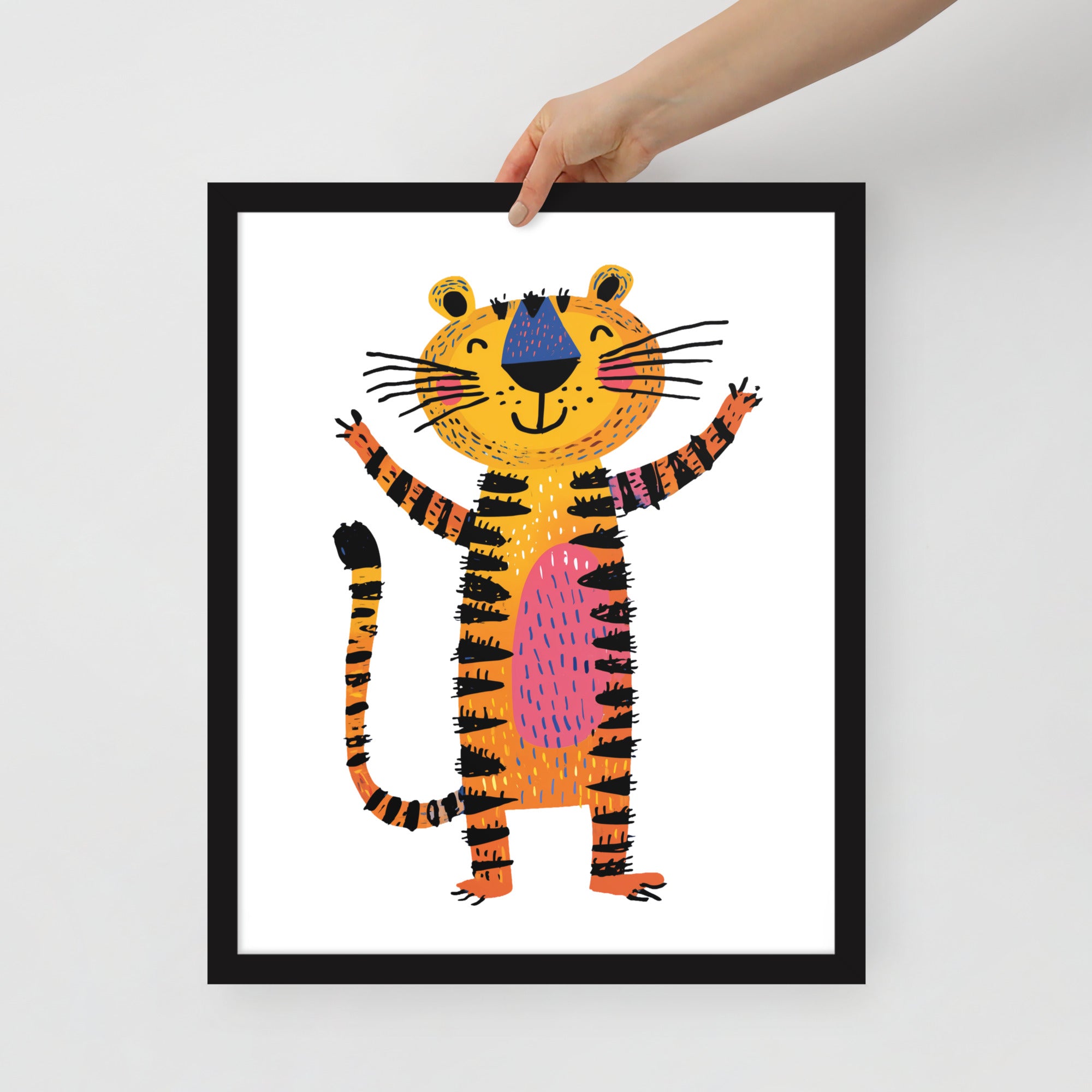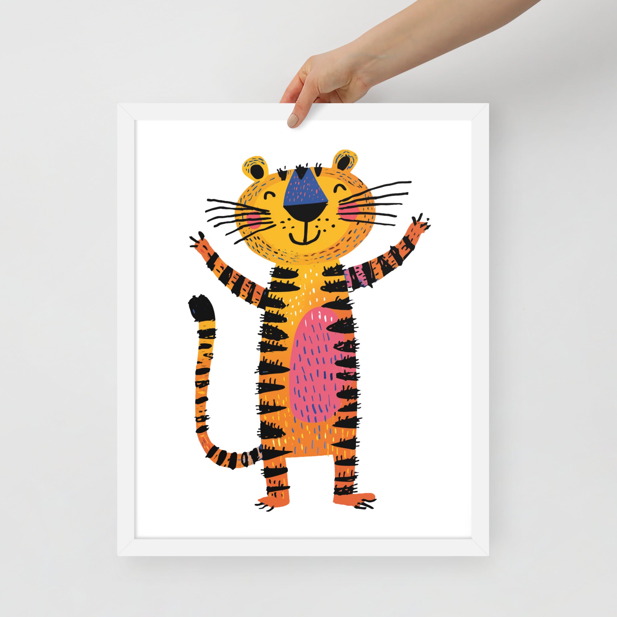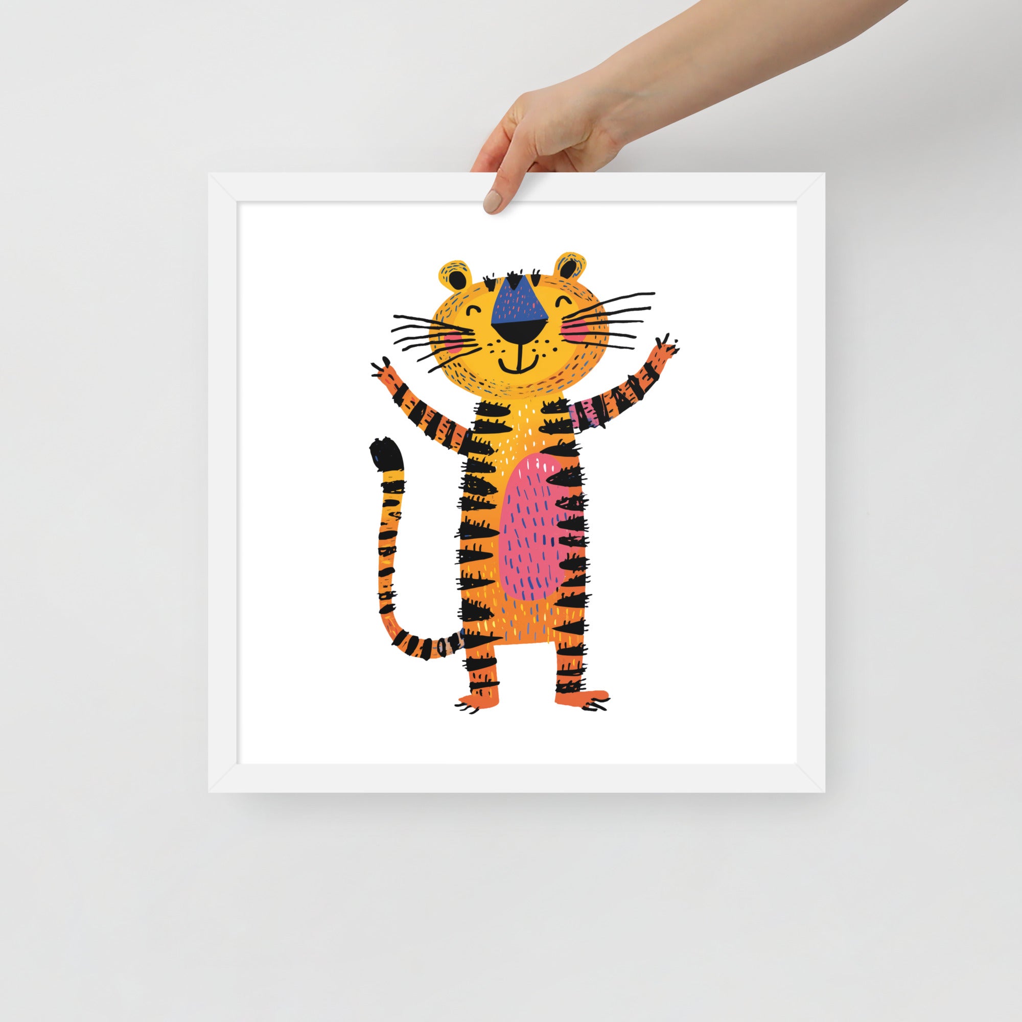 The Happy Tiger - MidCentury Storybook Series - Framed Nursery Wall Art