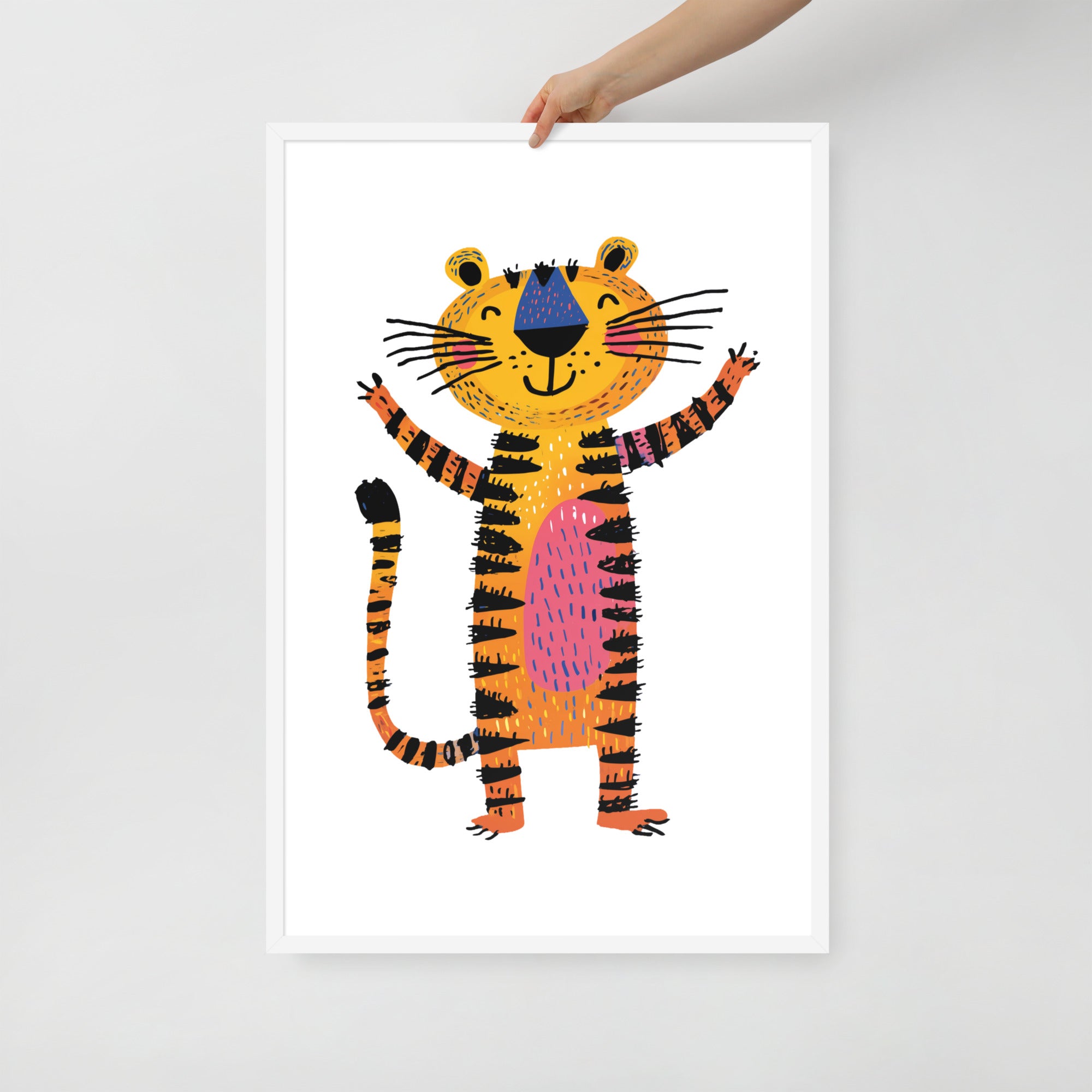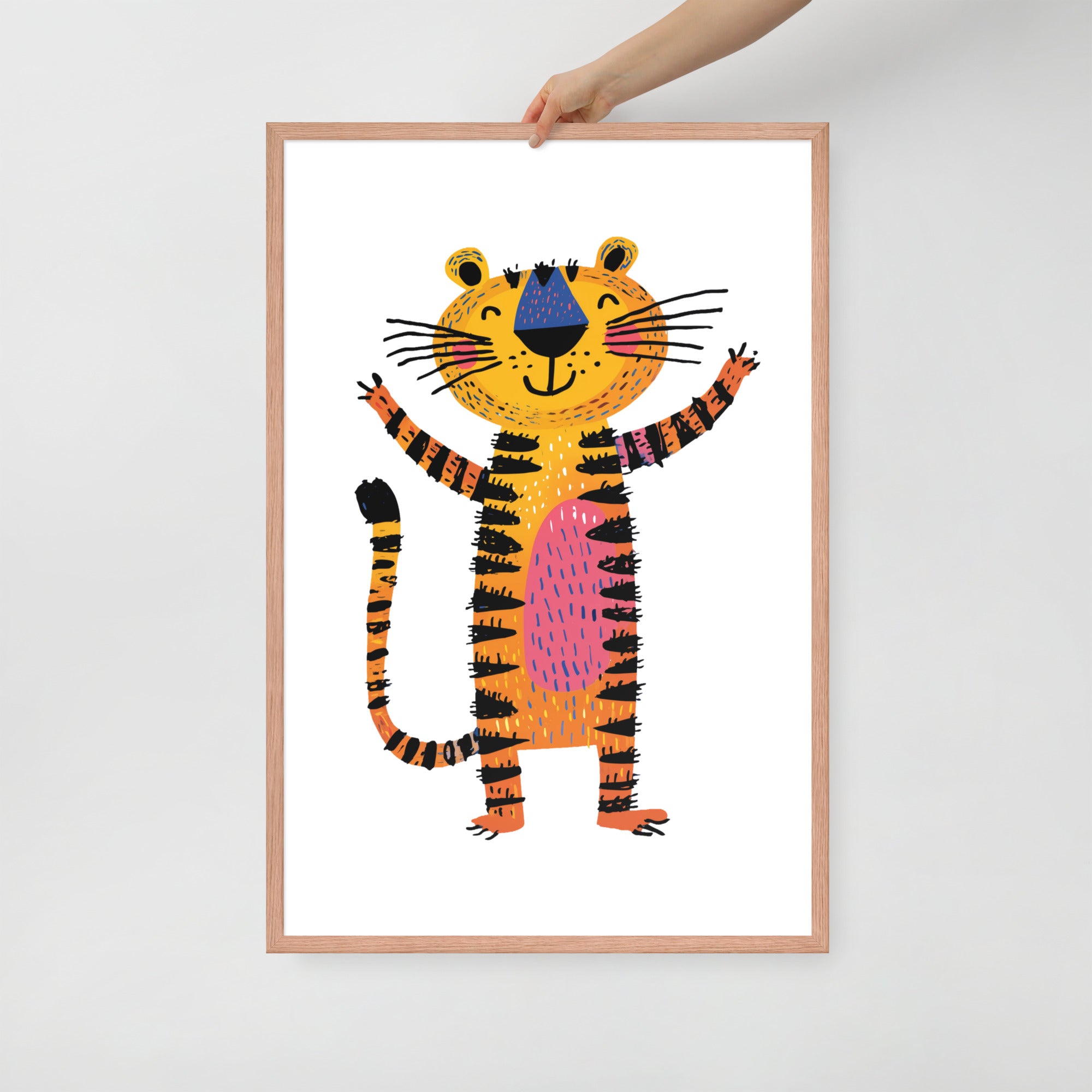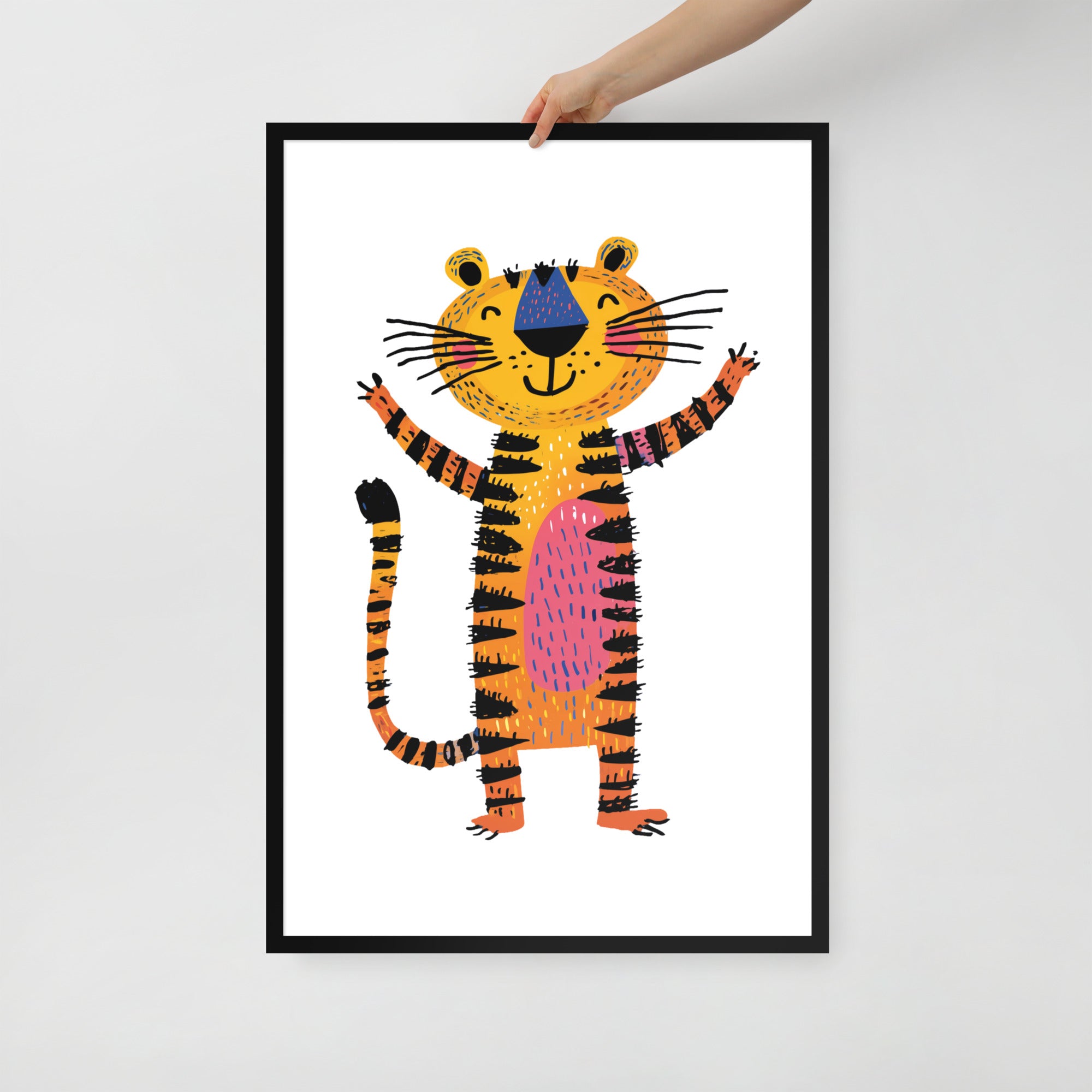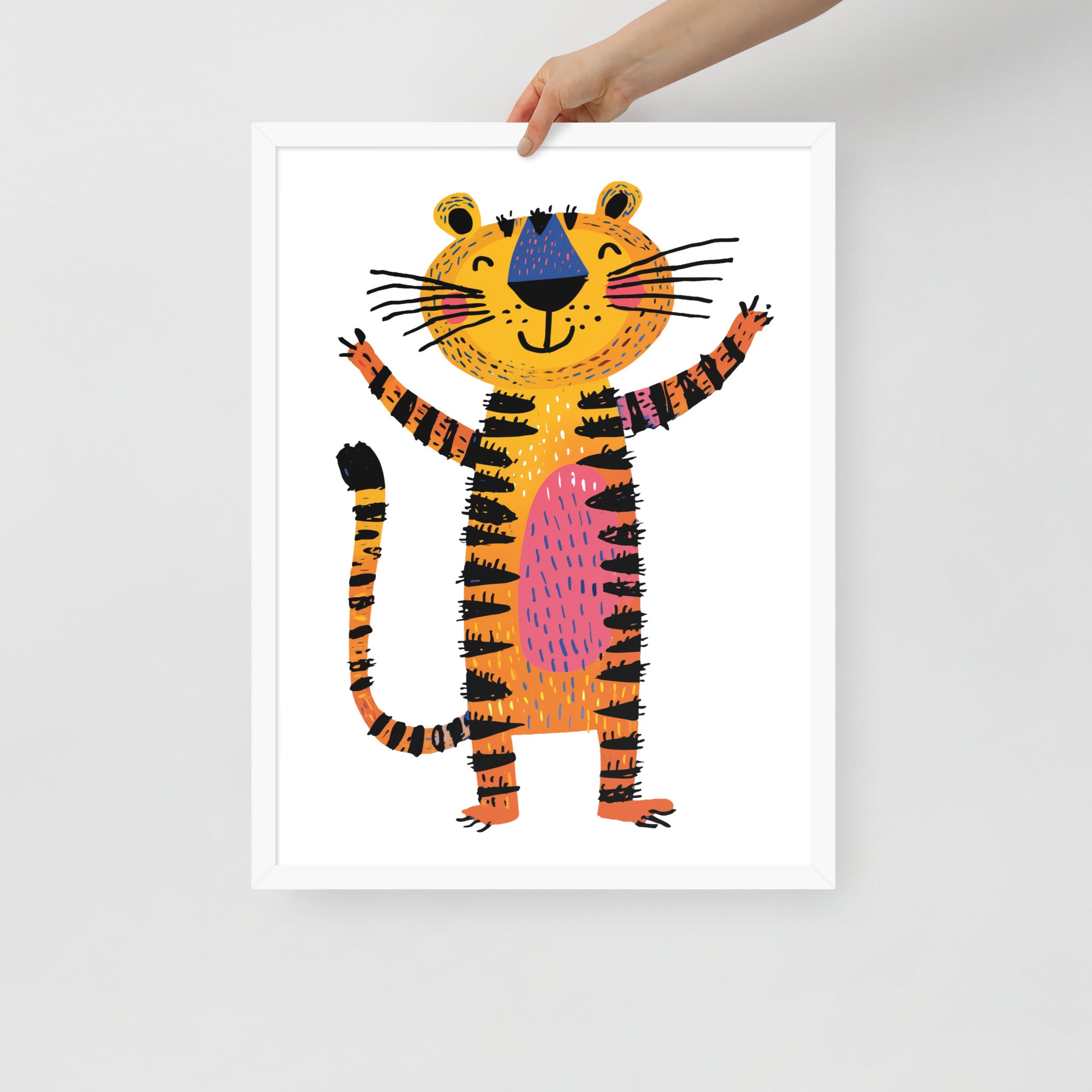 The Happy Tiger - MidCentury Storybook Series - Framed Nursery Wall Art