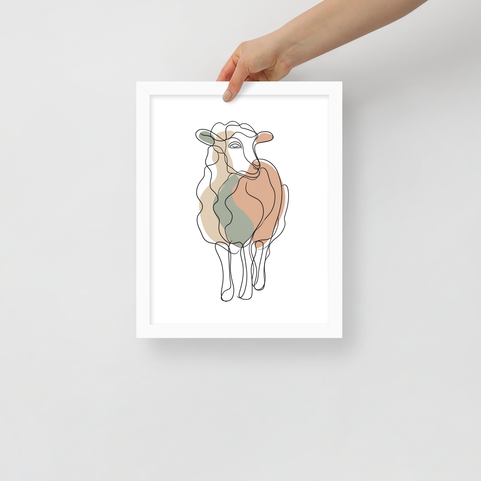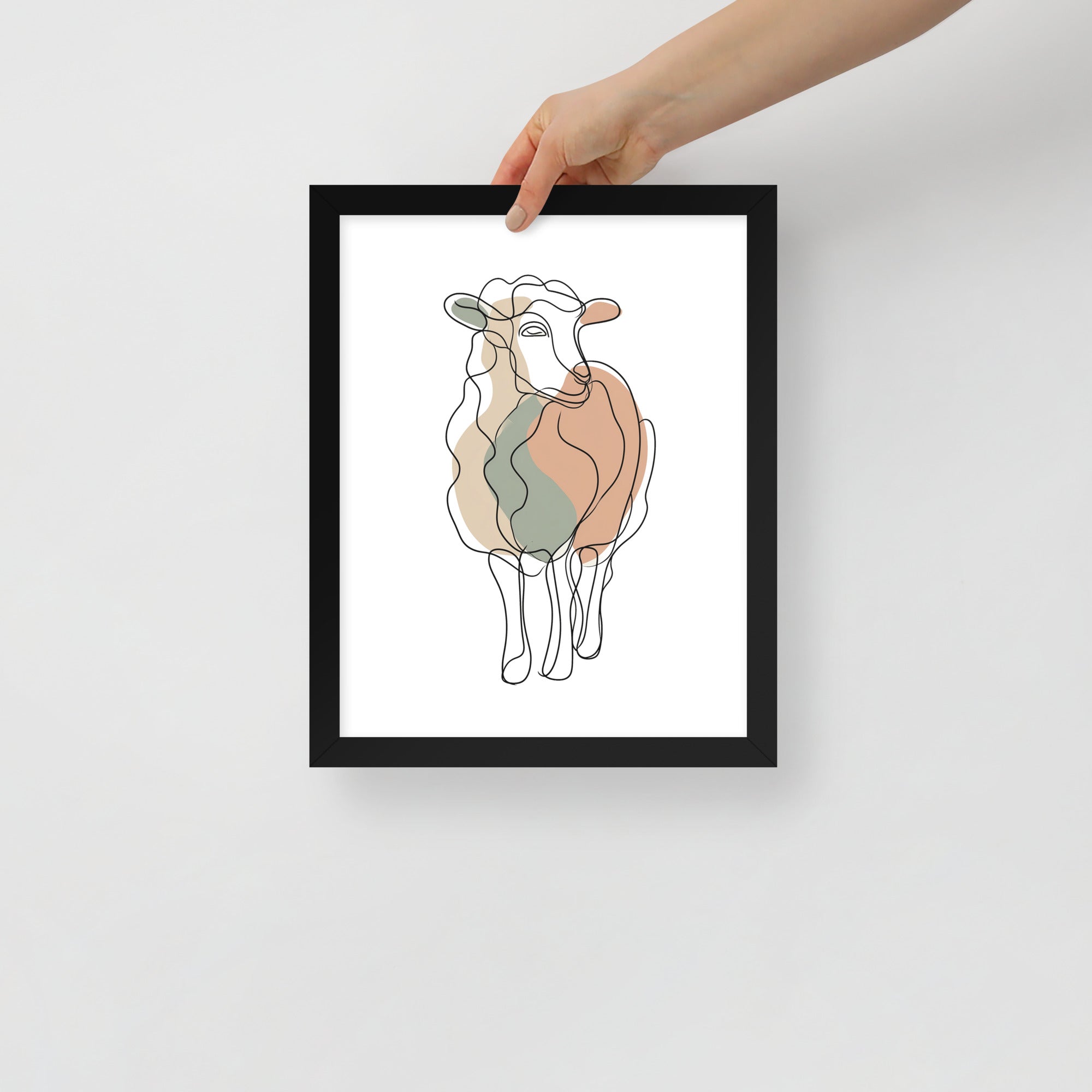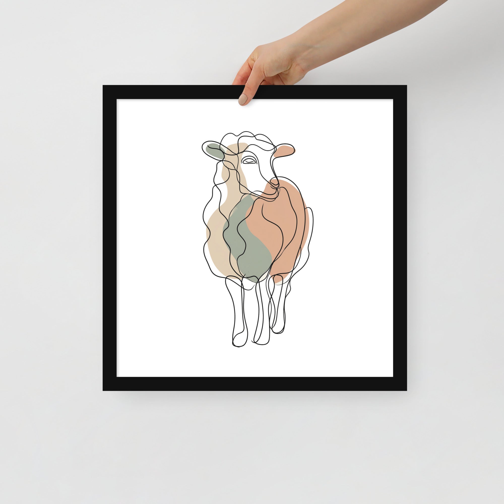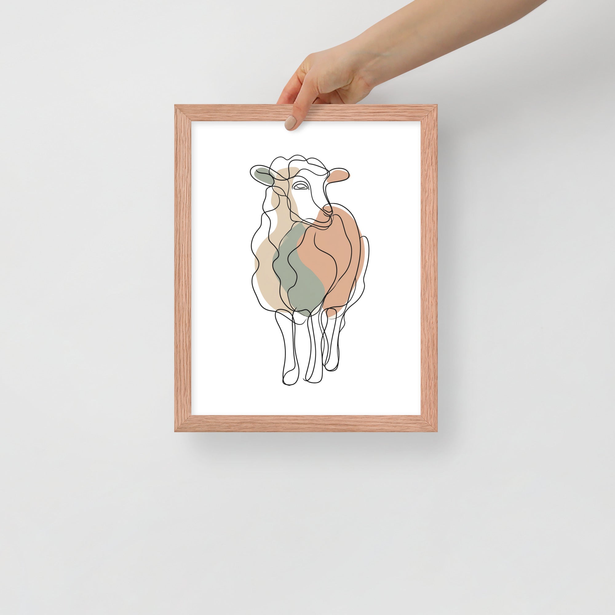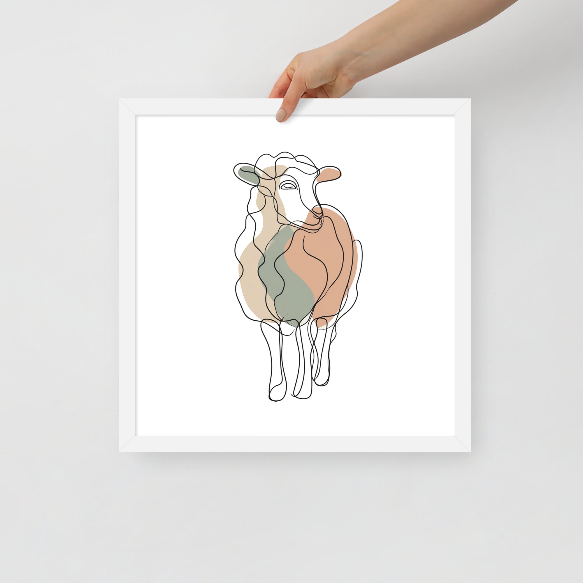 The Soft Sheep - Line Art Series - Framed Nursery Wall Art