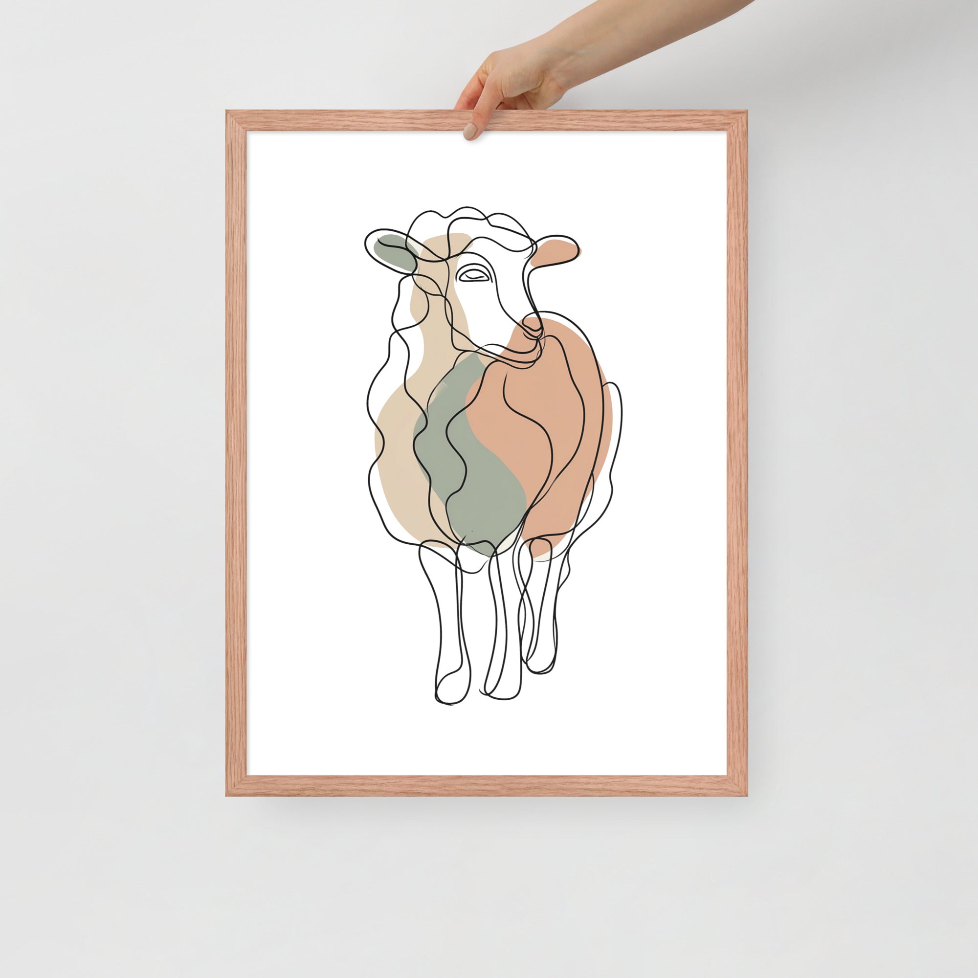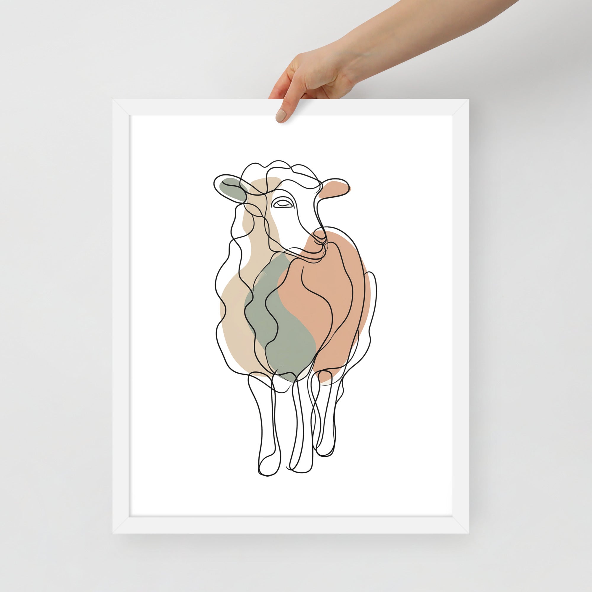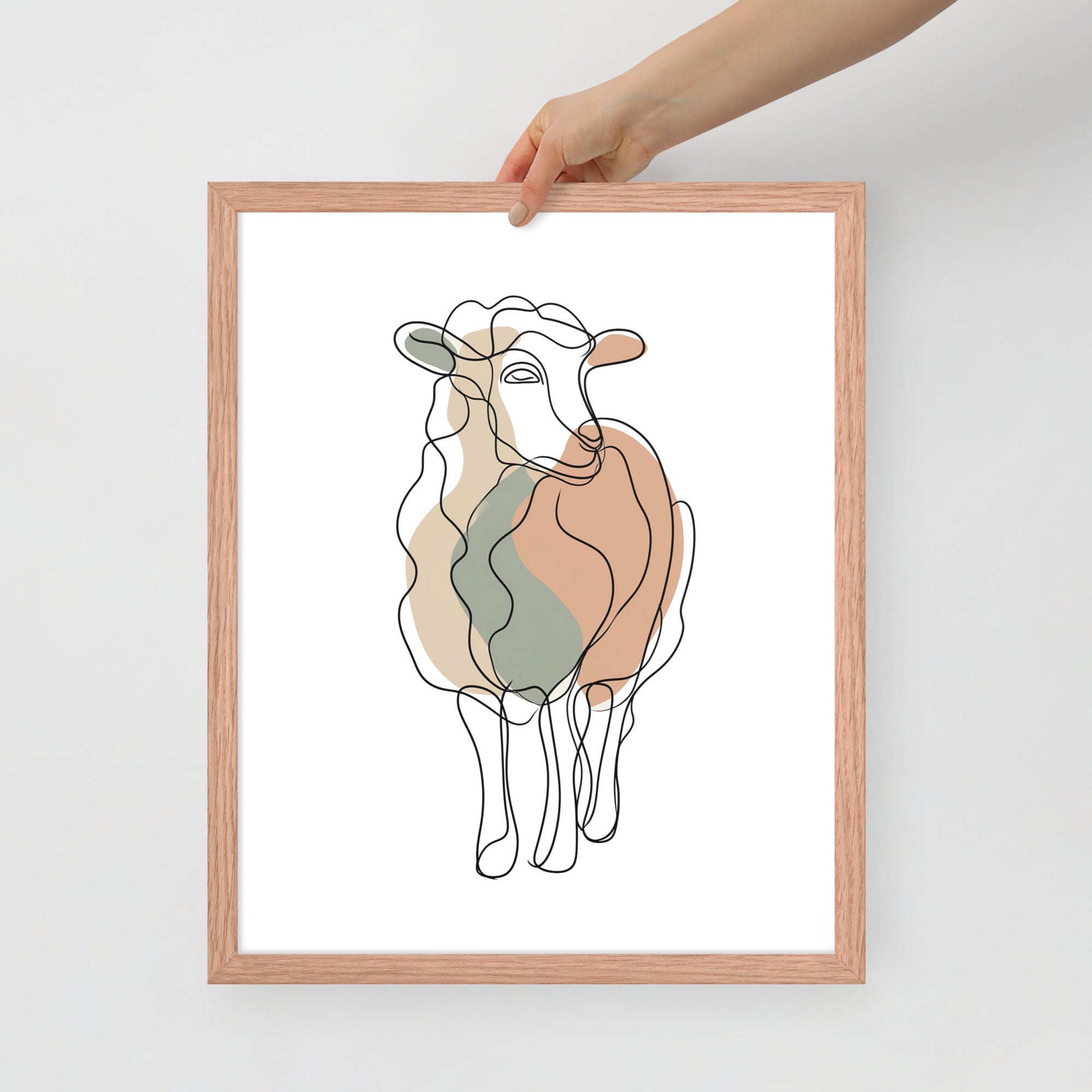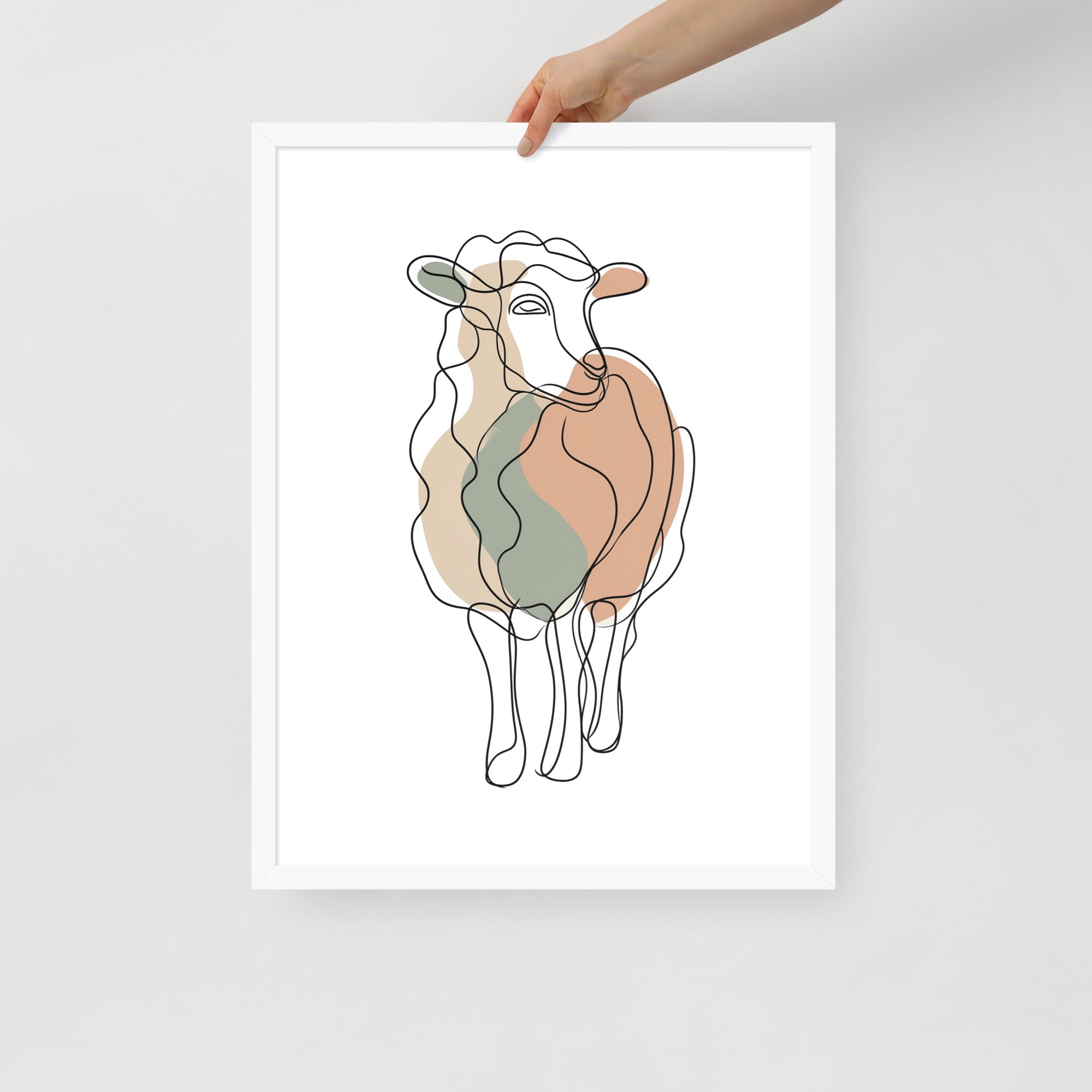 The Soft Sheep - Line Art Series - Framed Nursery Wall Art