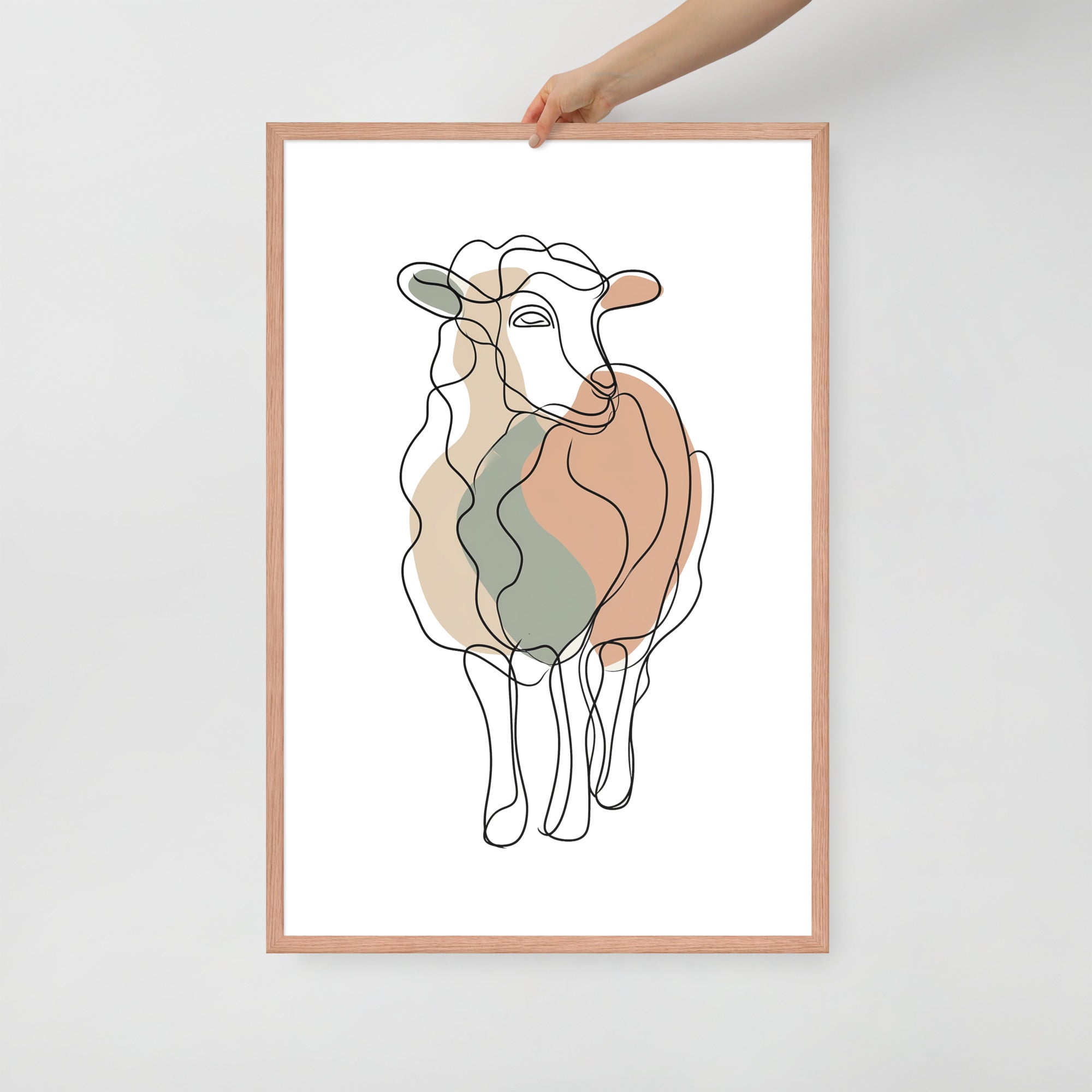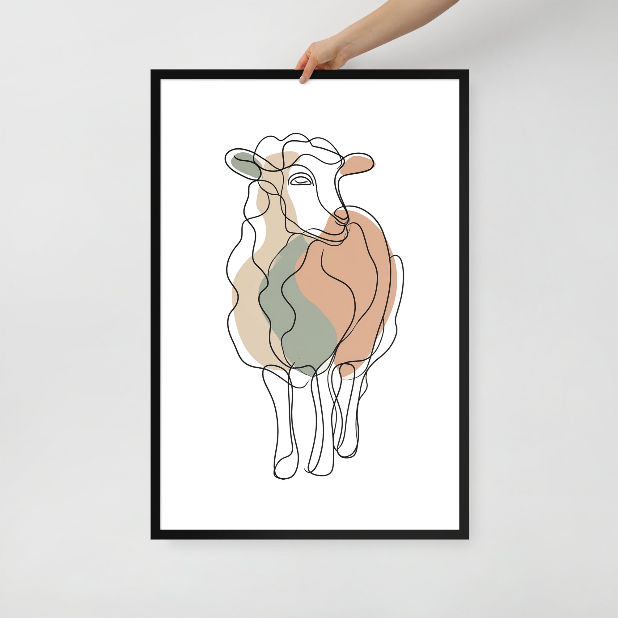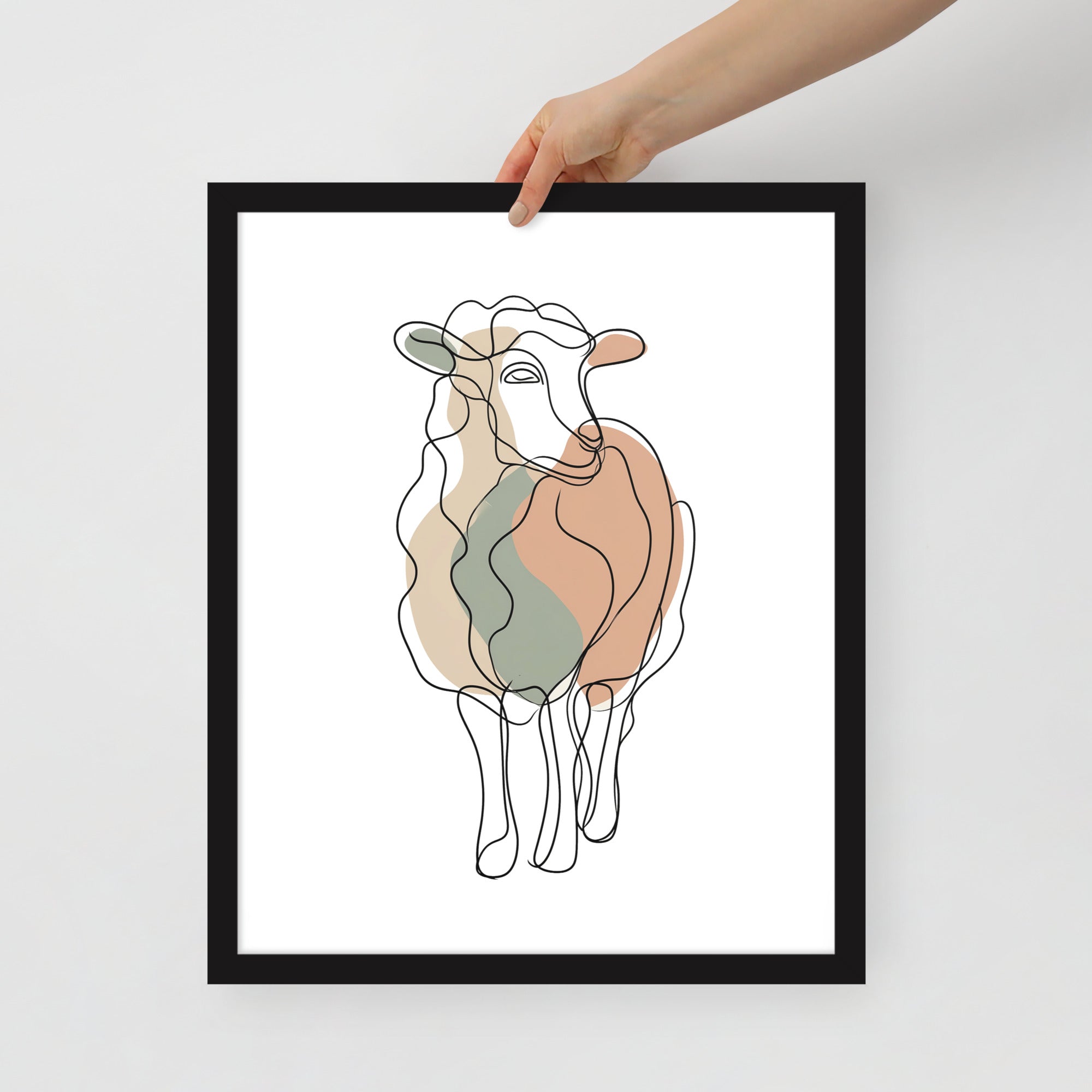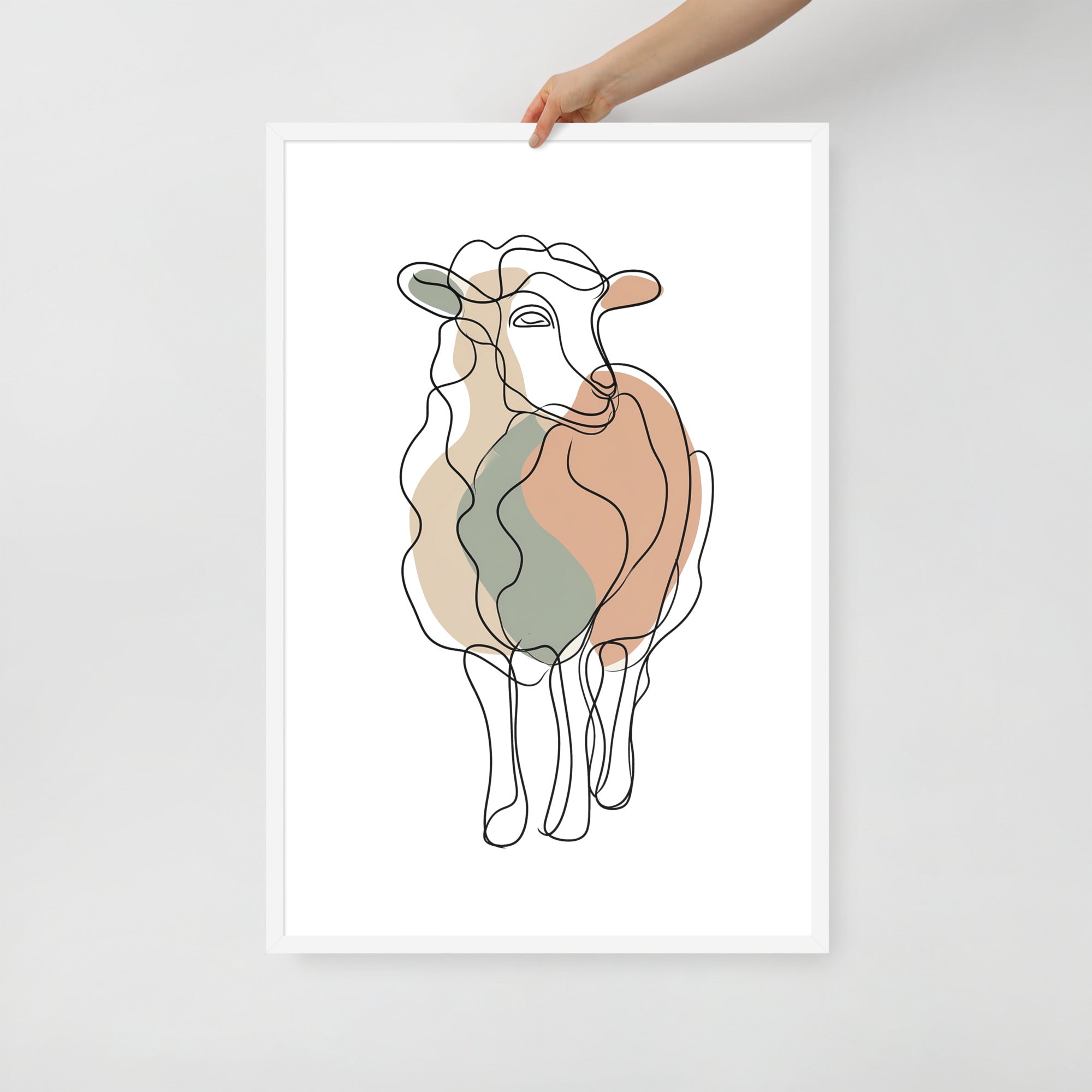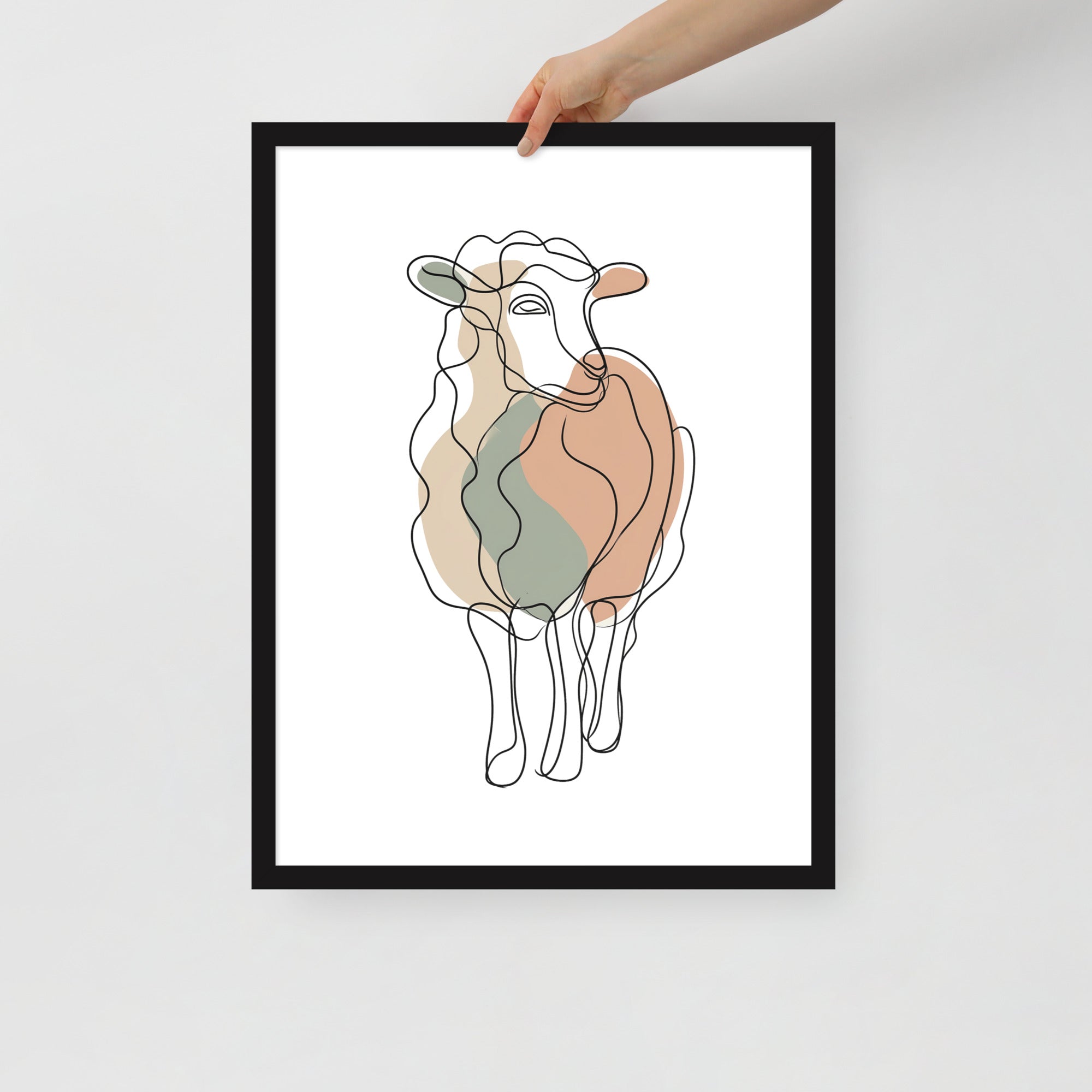 The Soft Sheep - Line Art Series - Framed Nursery Wall Art