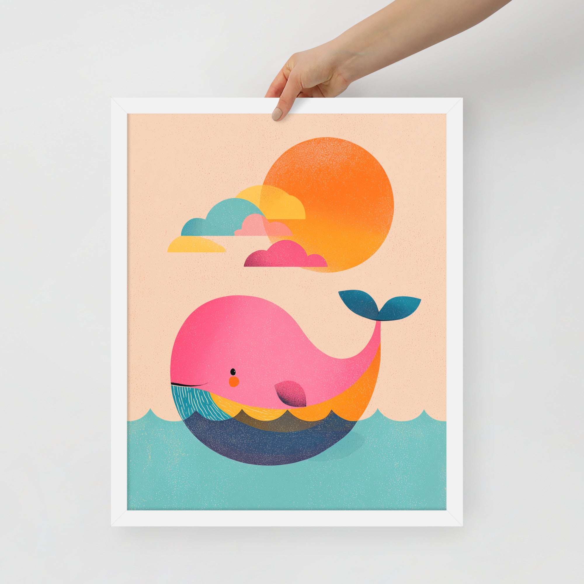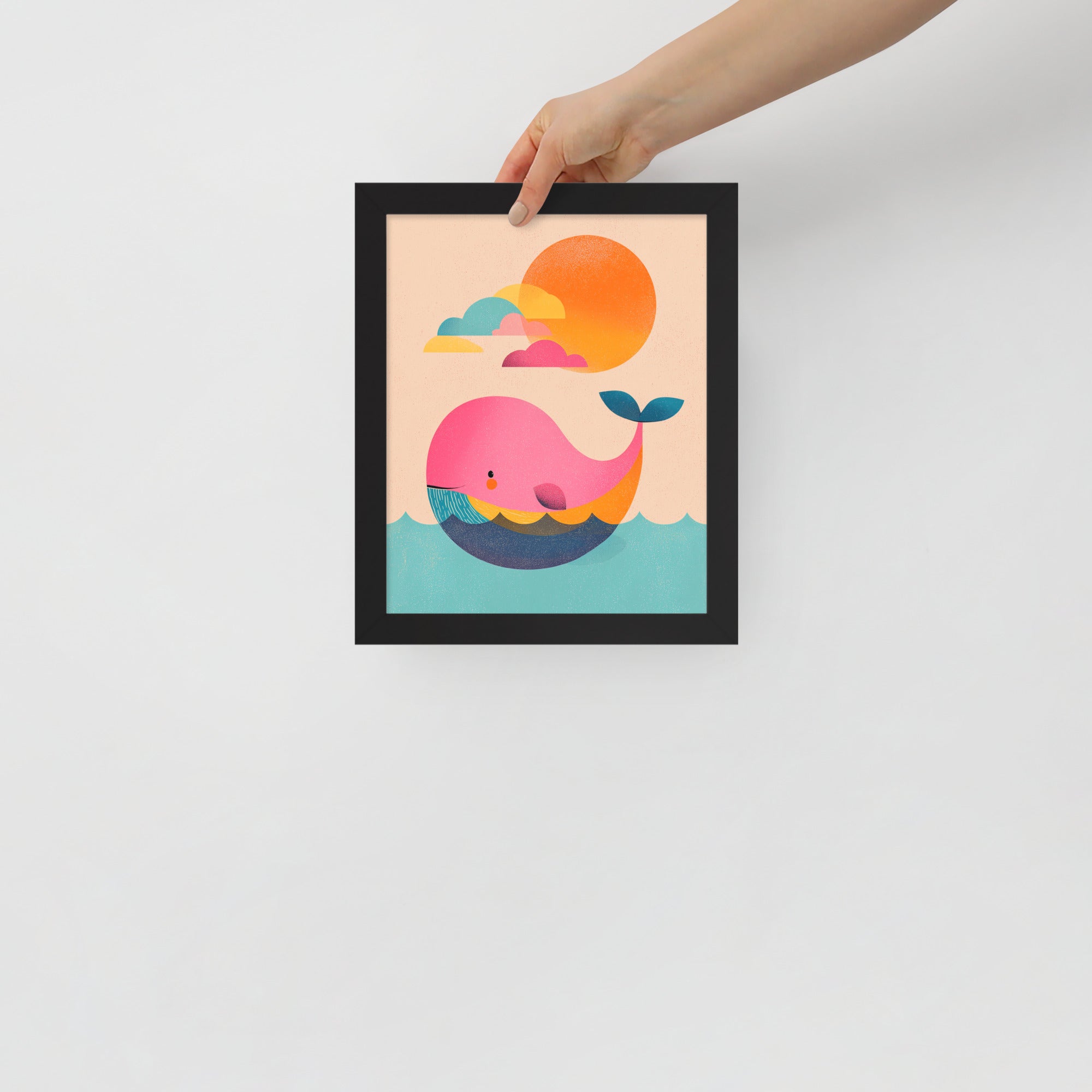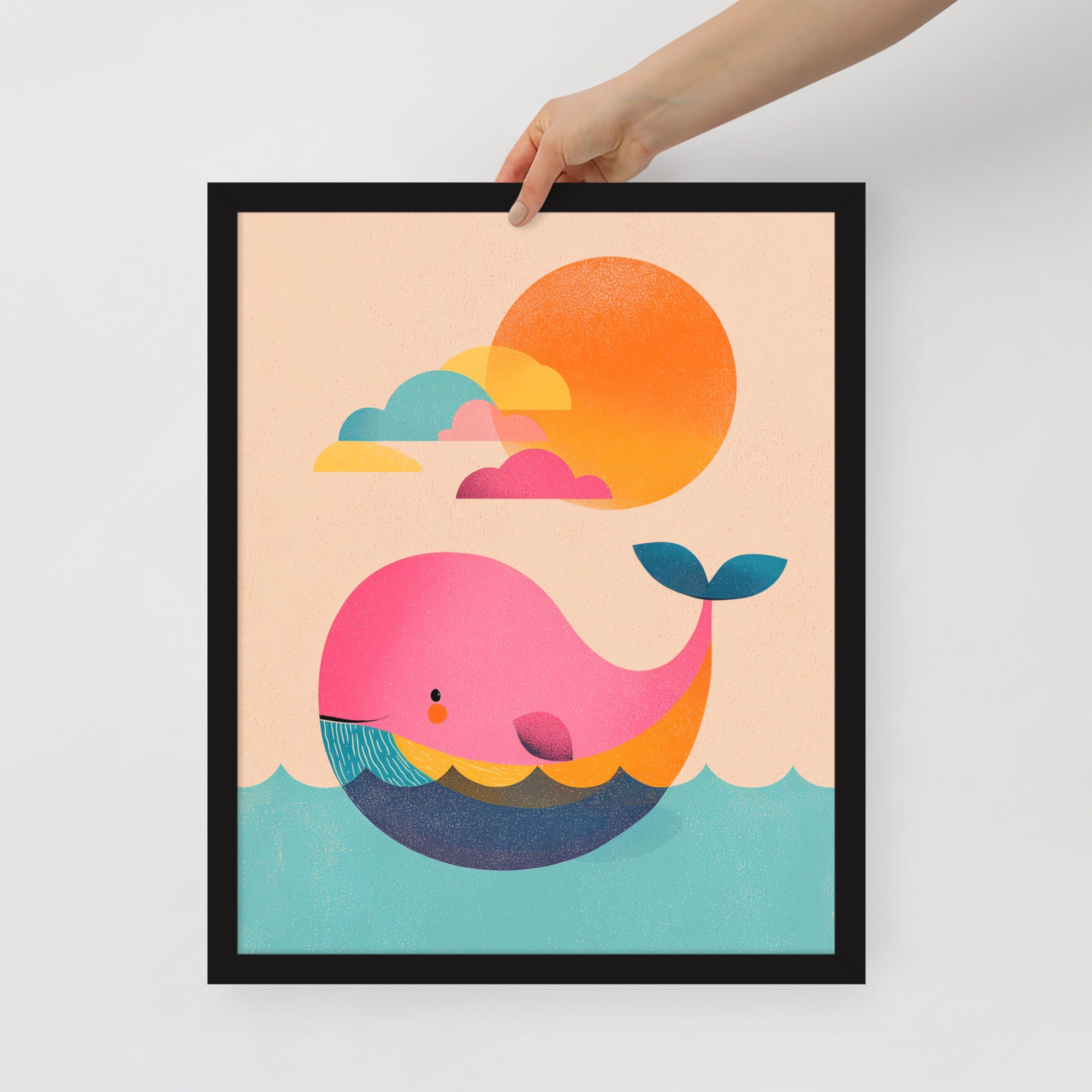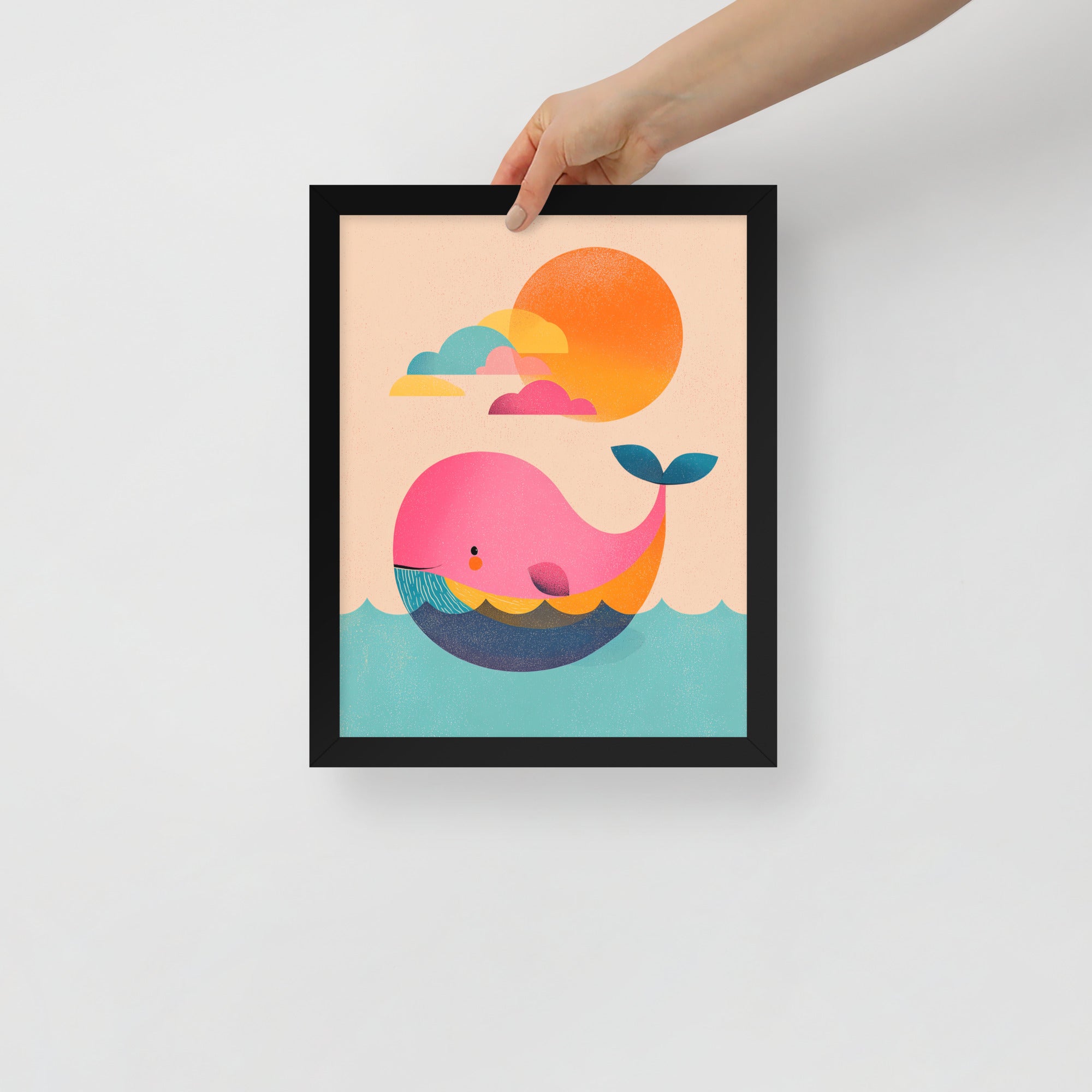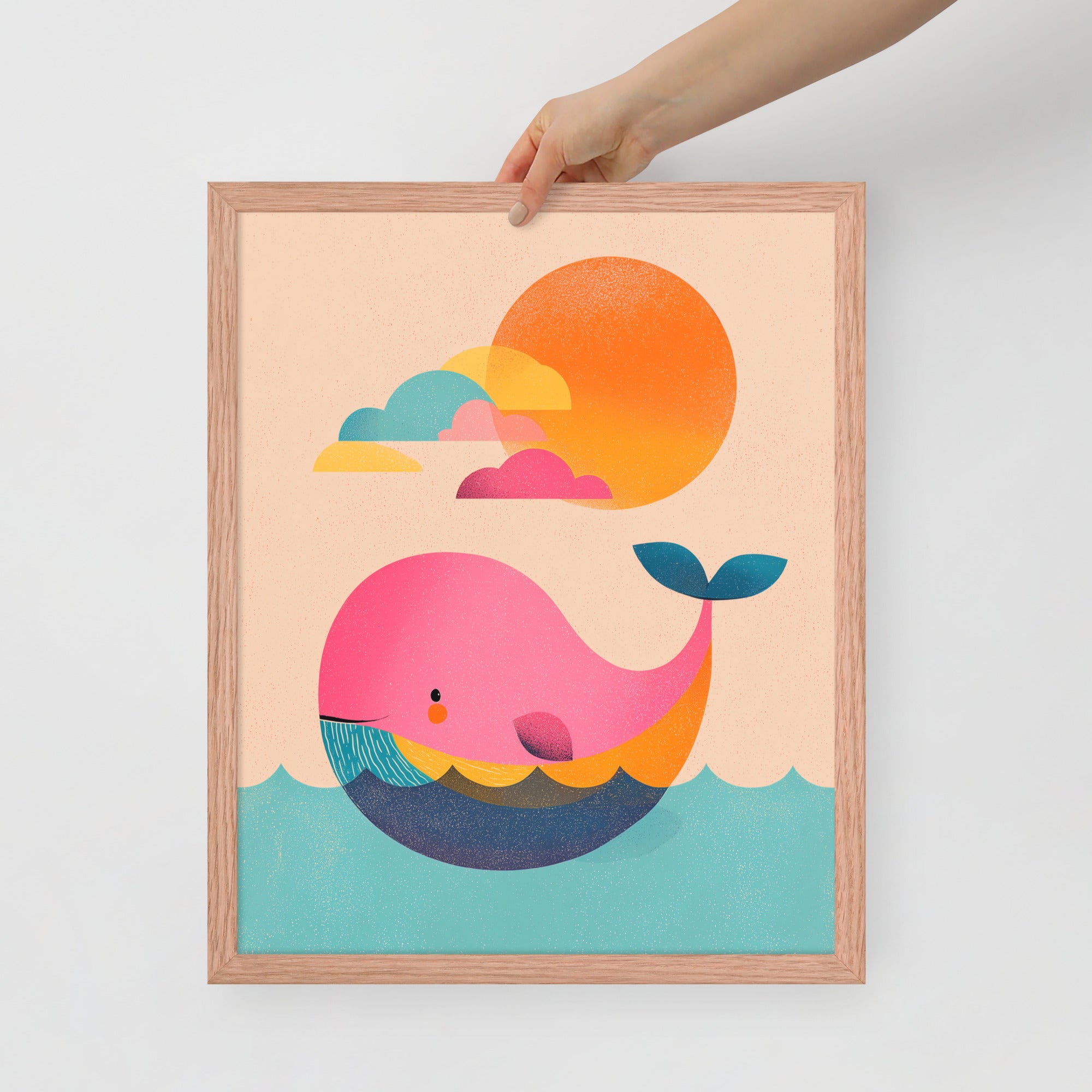 Whale Sunset - MidCentury Storybook Series - Framed Nursery Wall Art