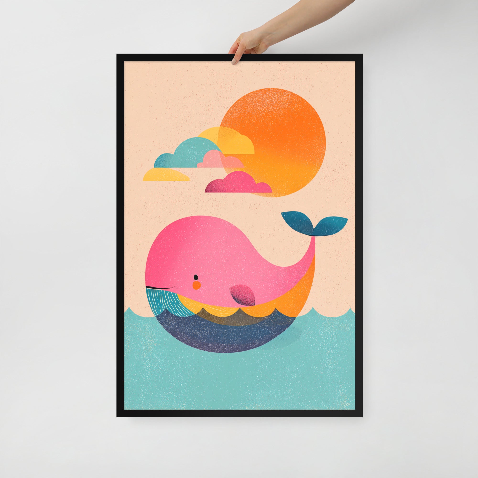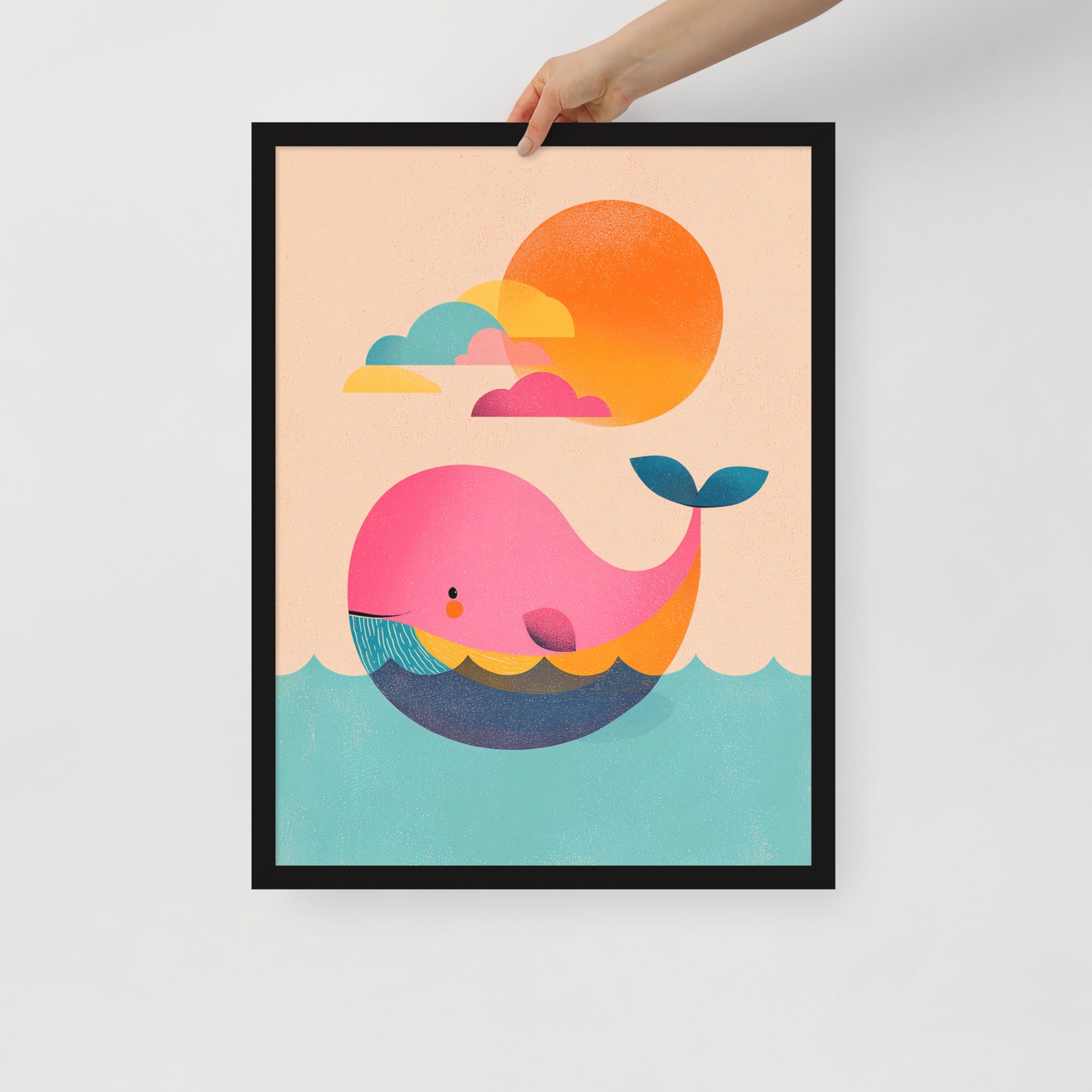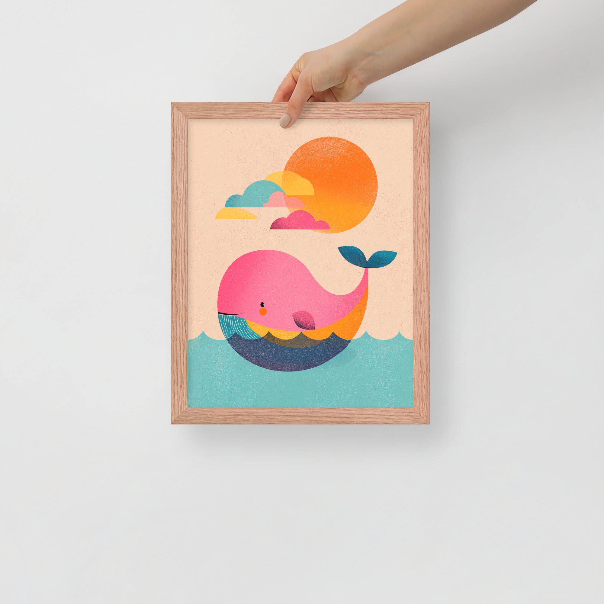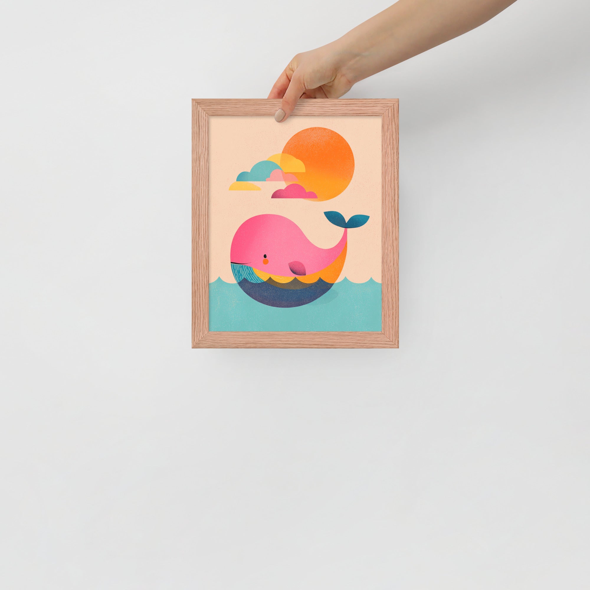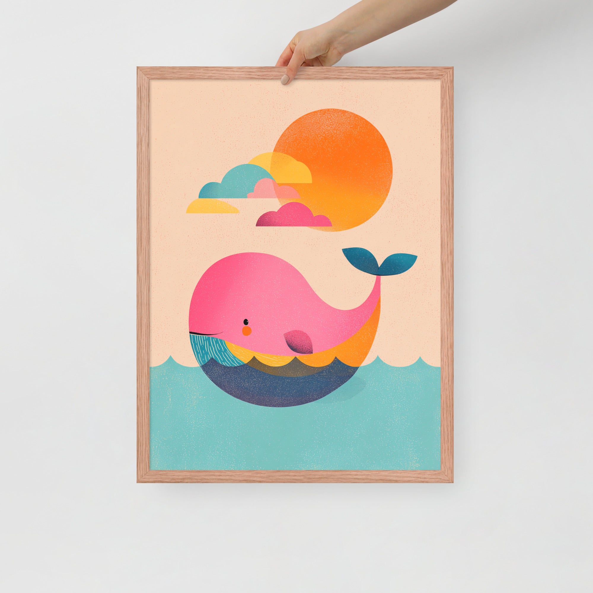 Whale Sunset - MidCentury Storybook Series - Framed Nursery Wall Art