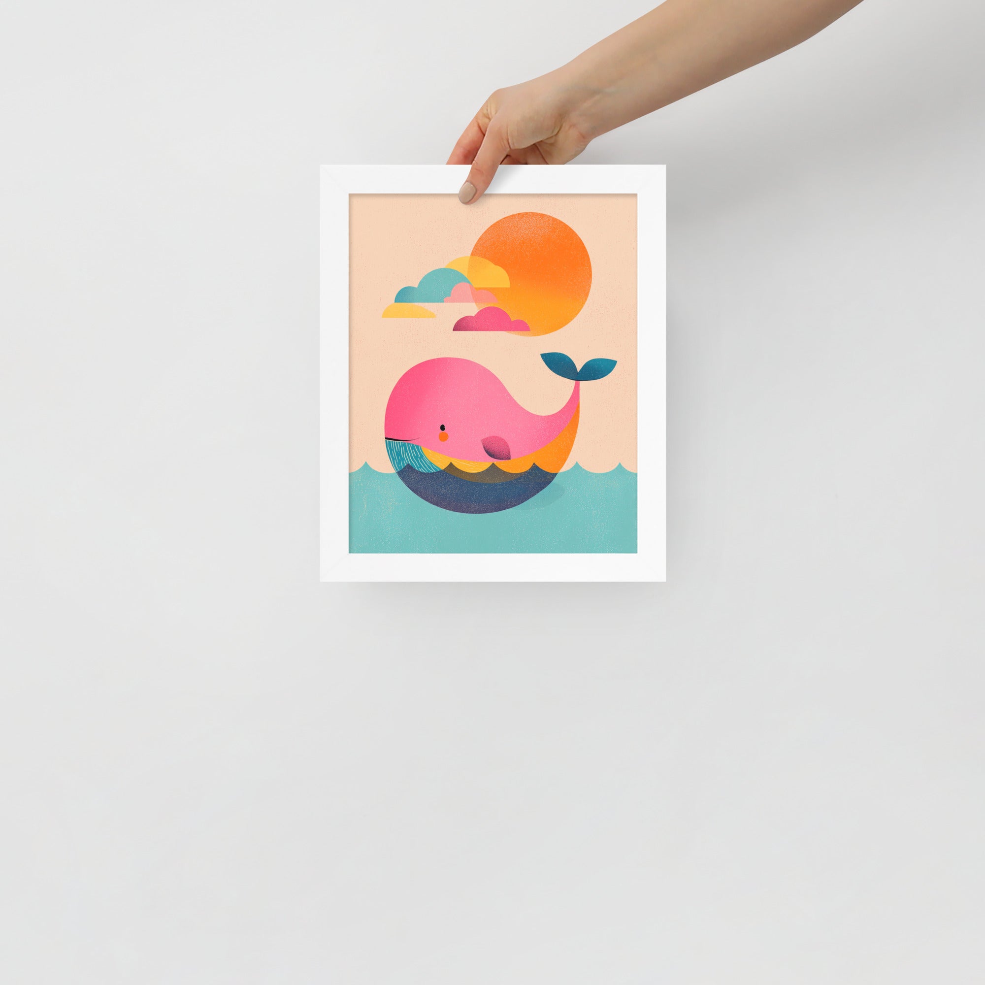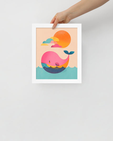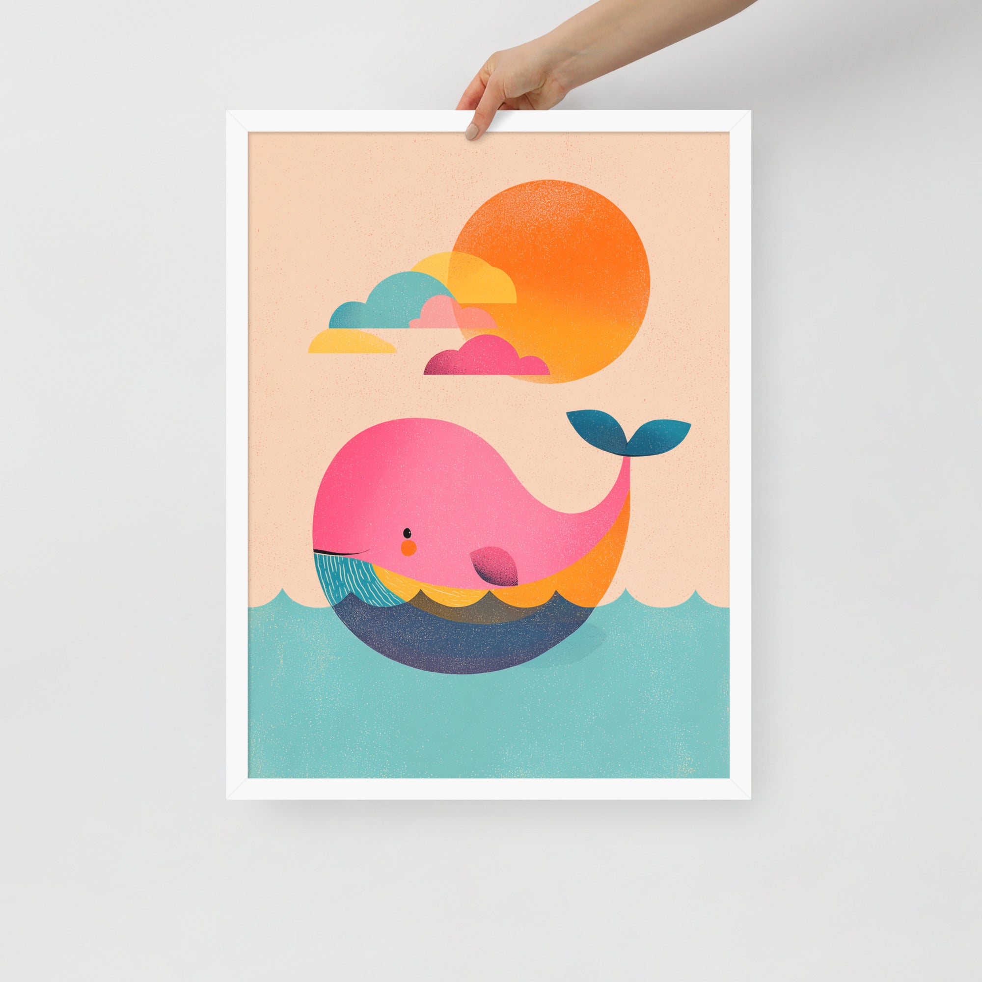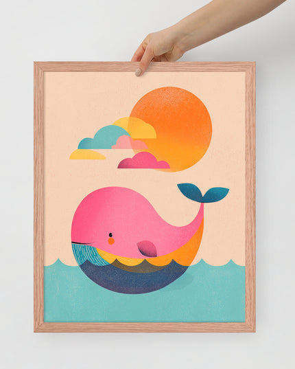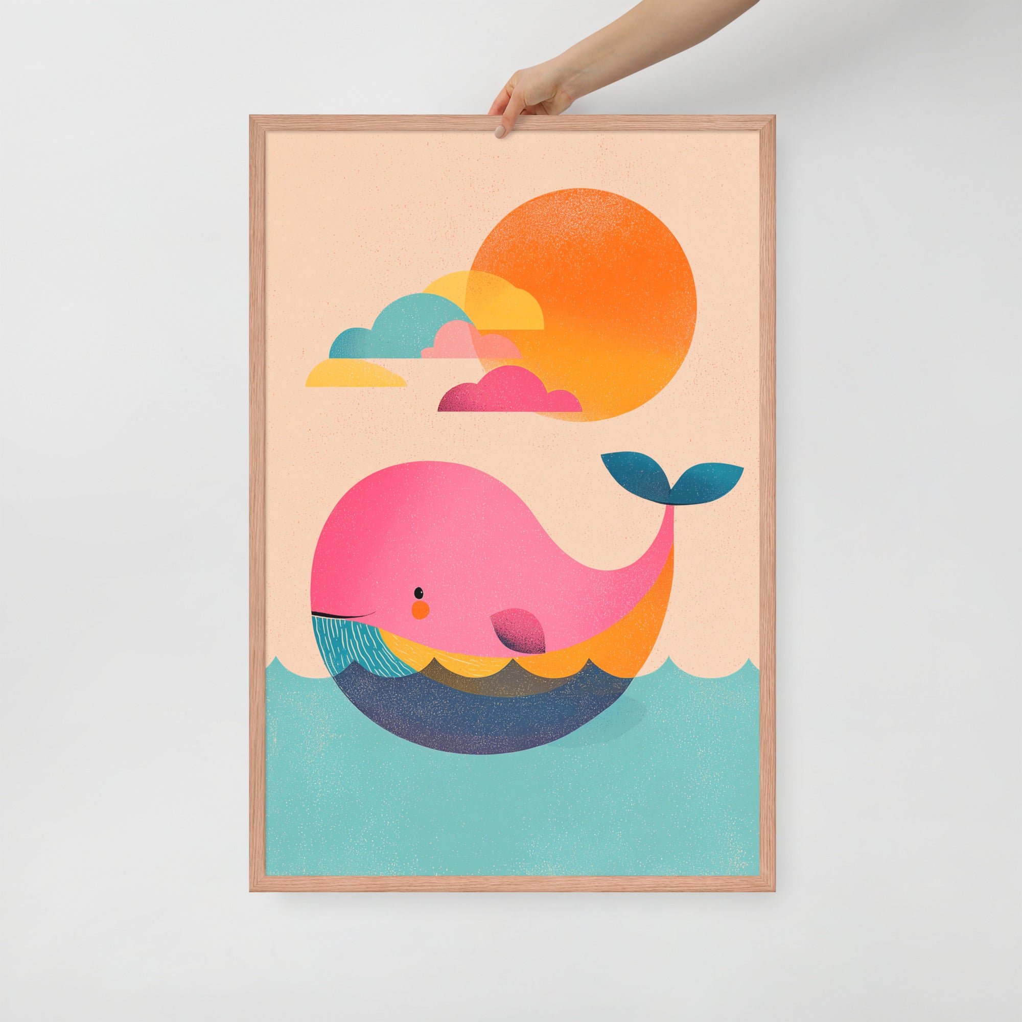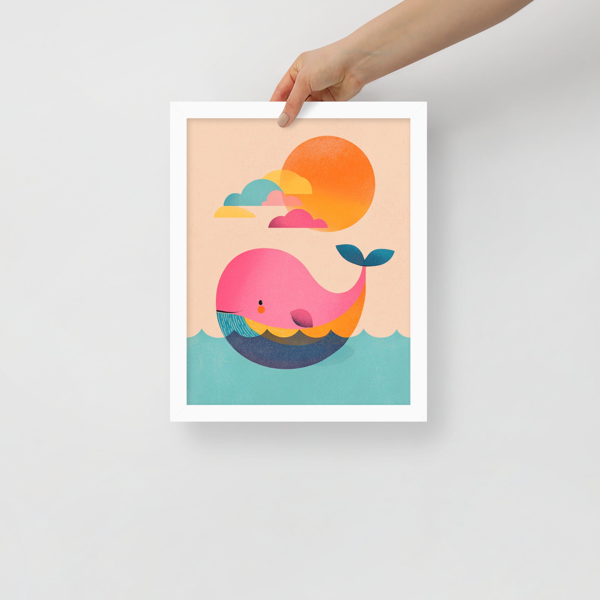 Whale Sunset - MidCentury Storybook Series - Framed Nursery Wall Art