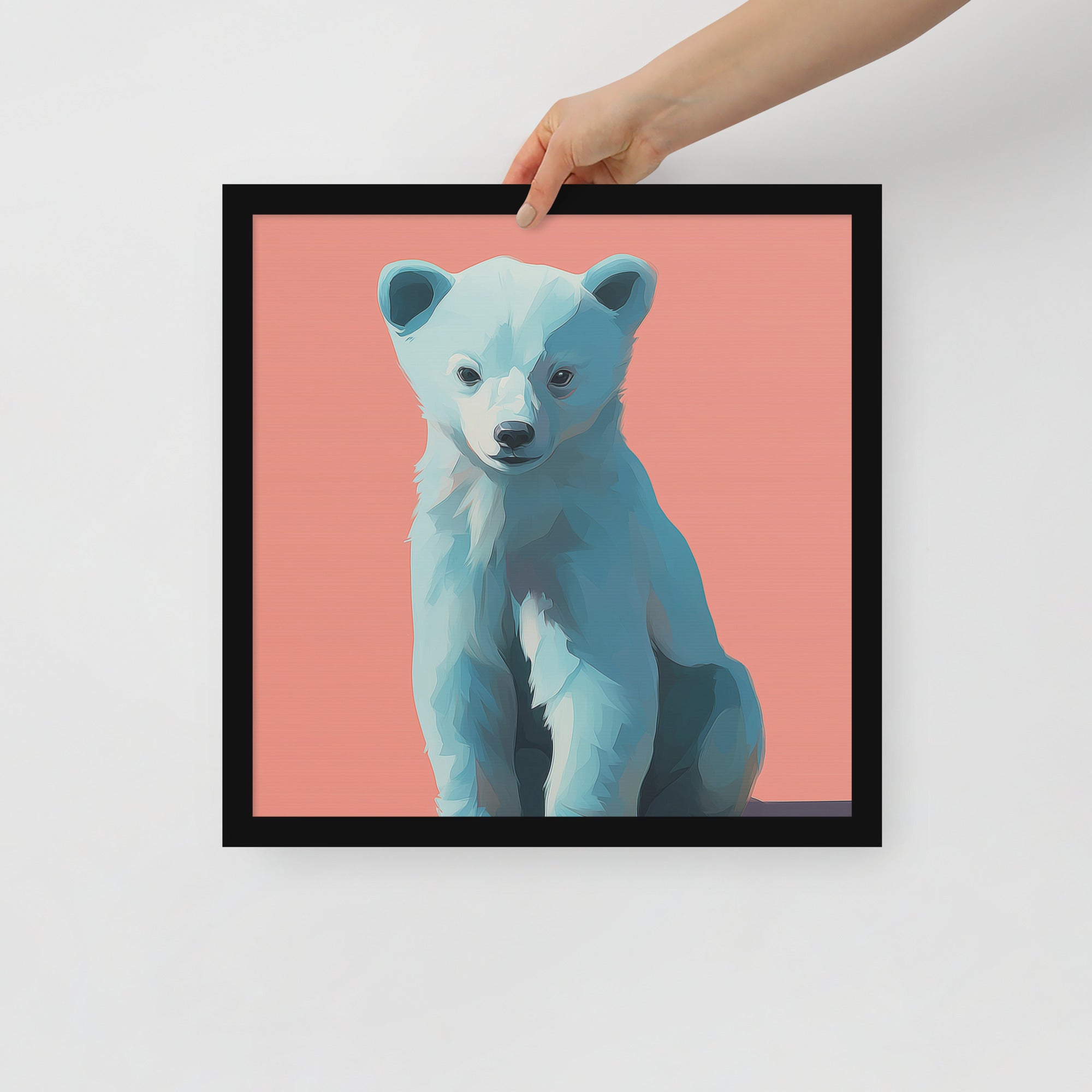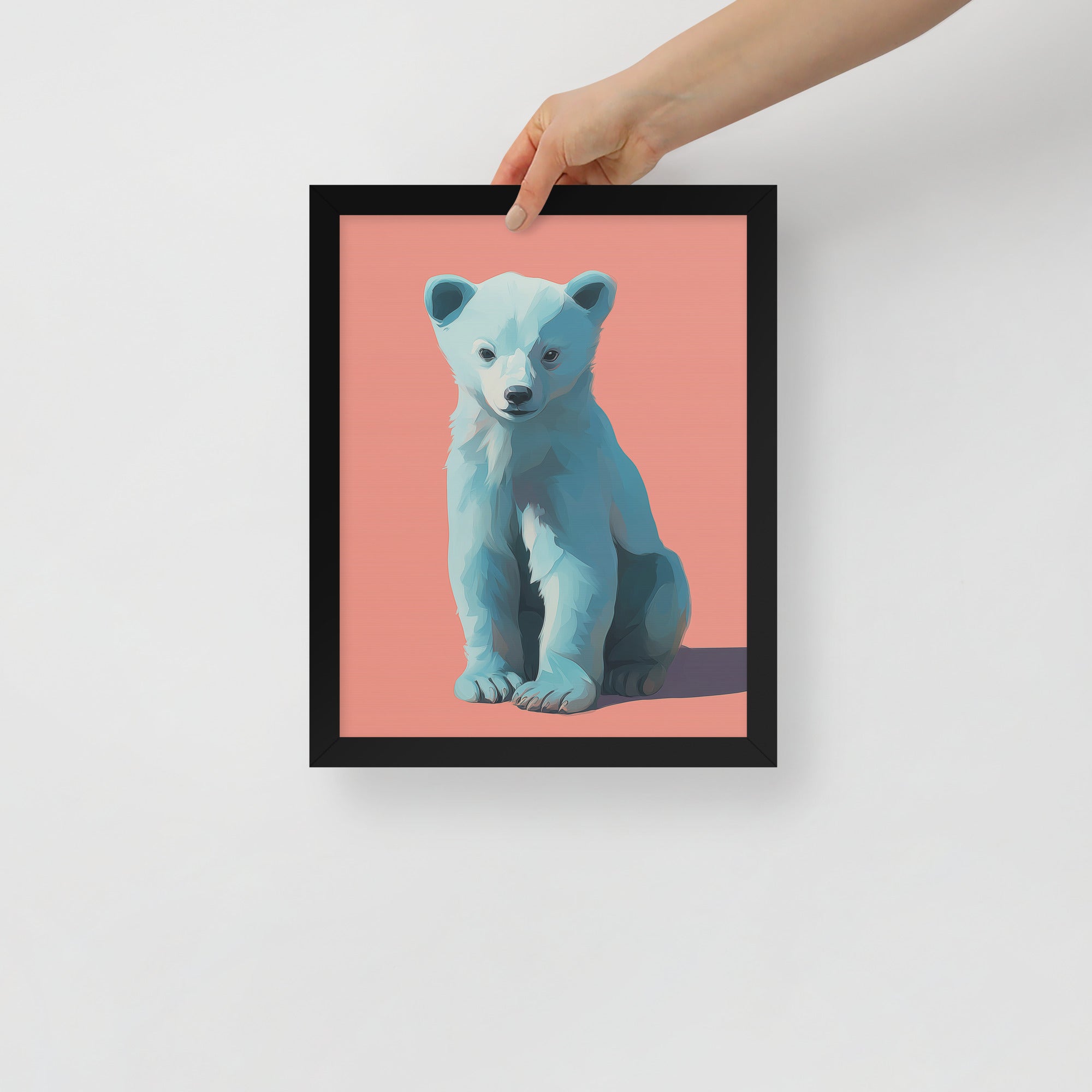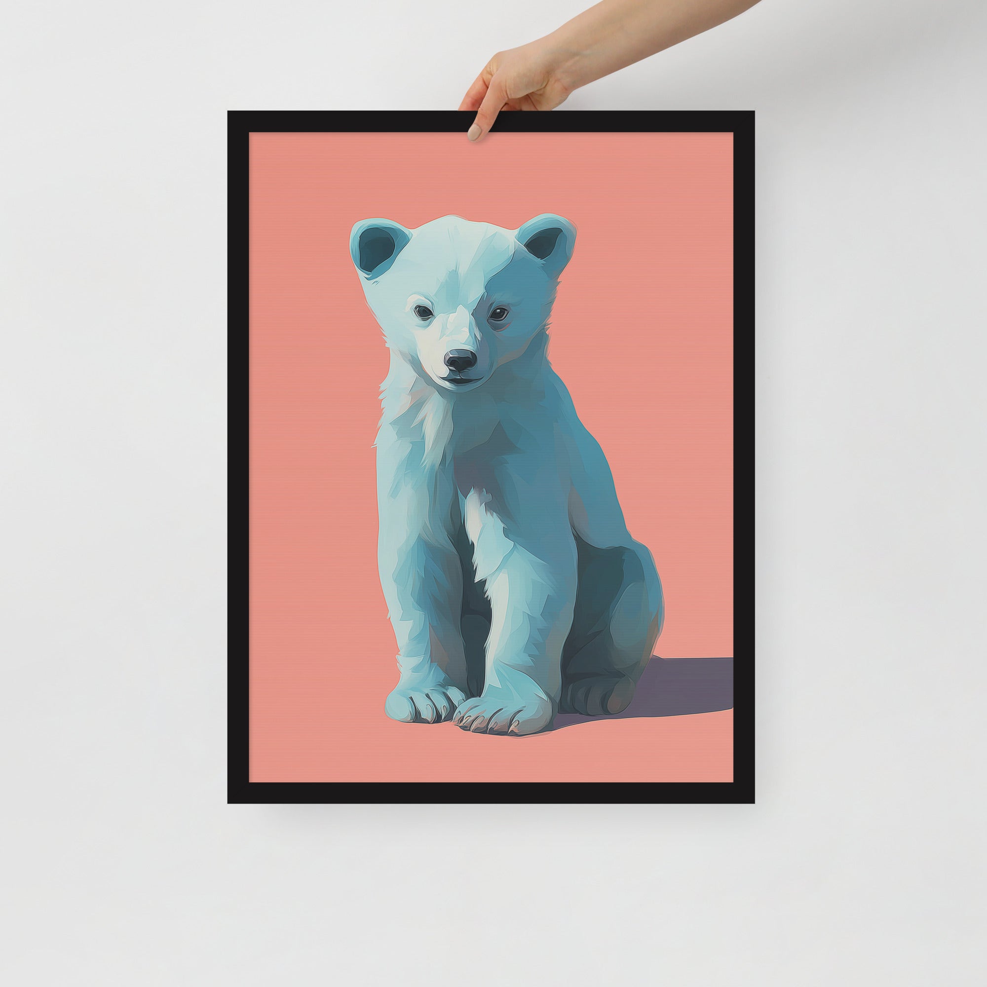 Young Bear Sits - Coral Series - Framed Nursery Wall Art
