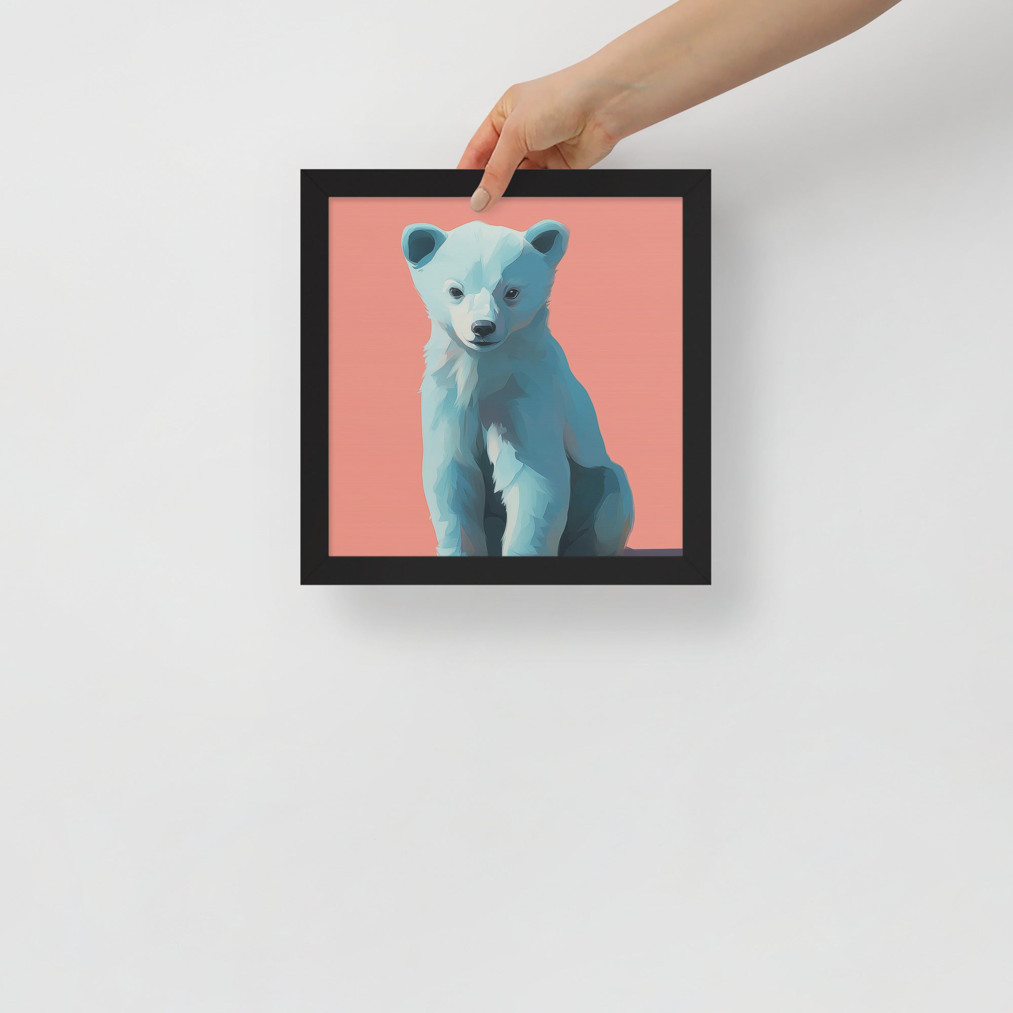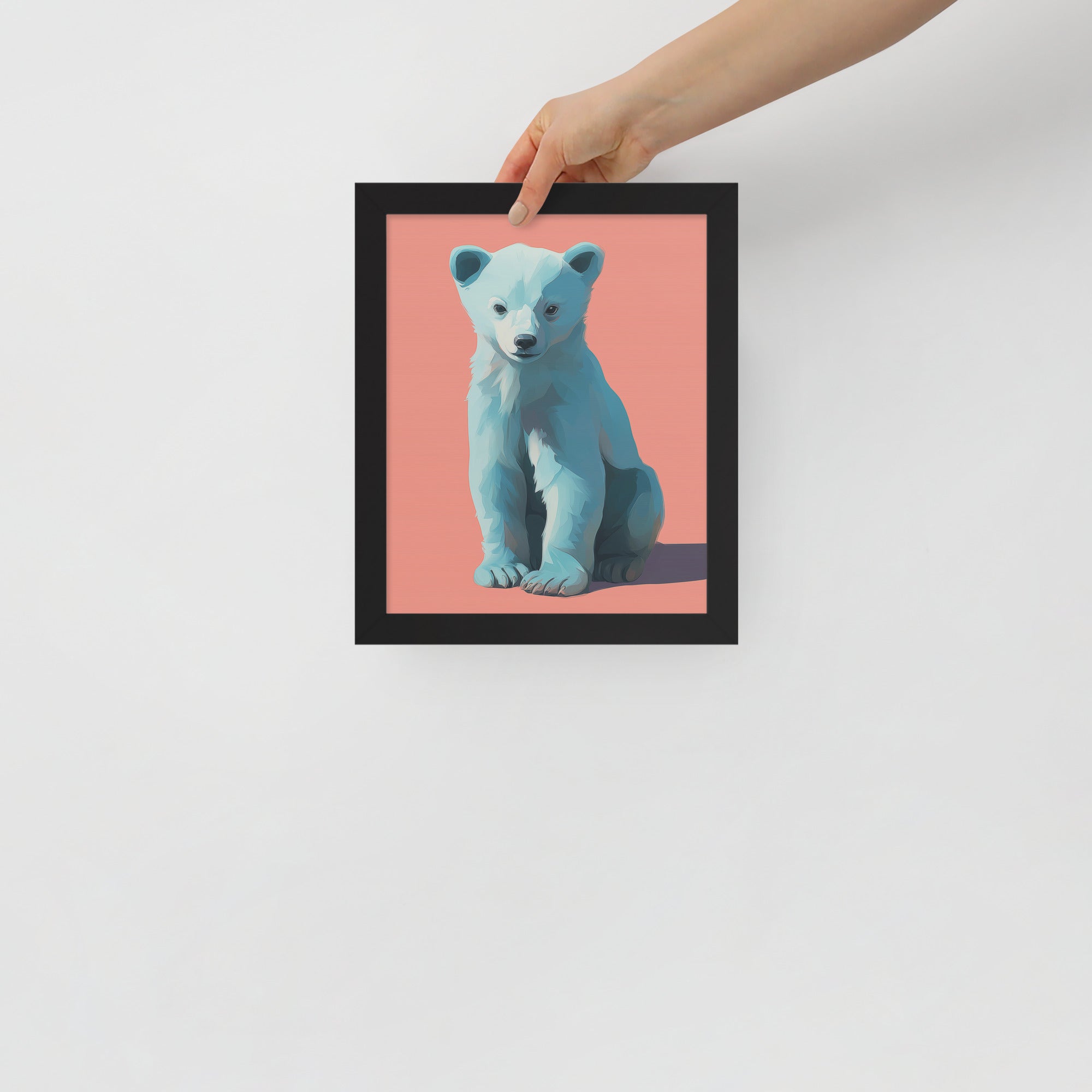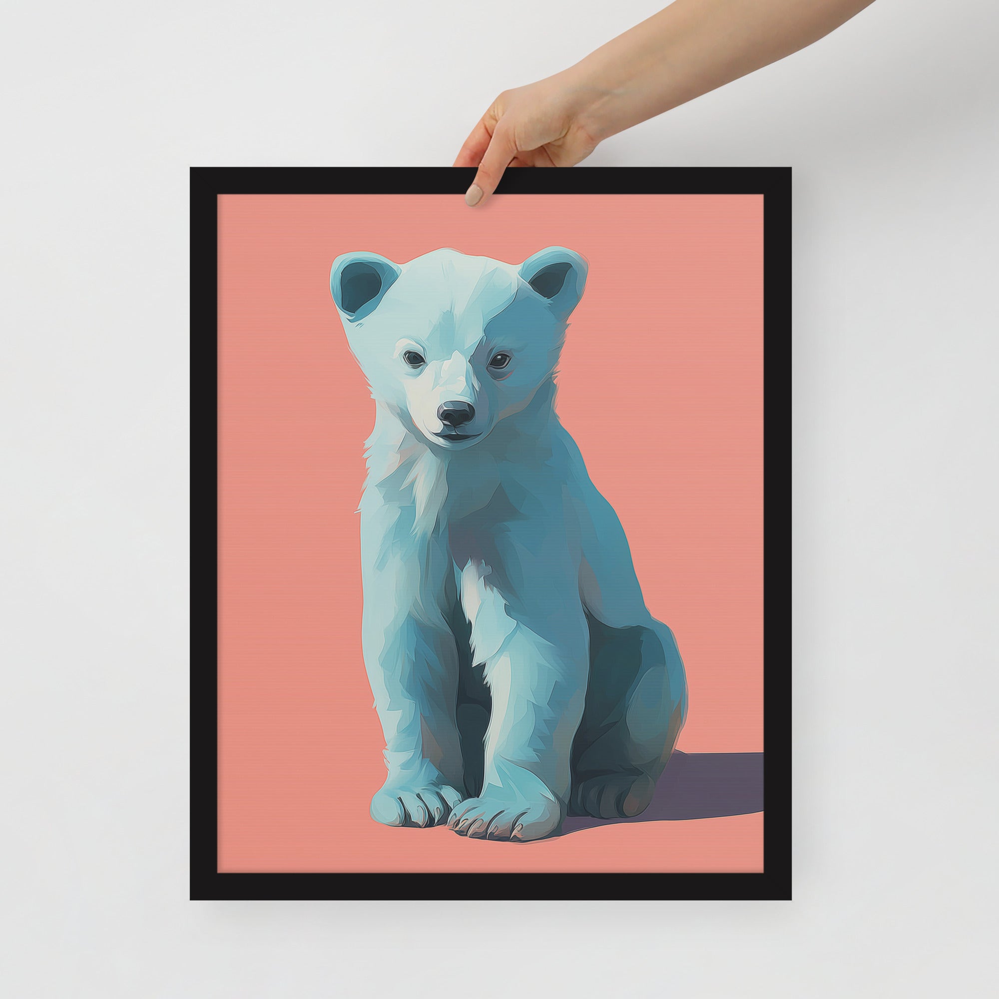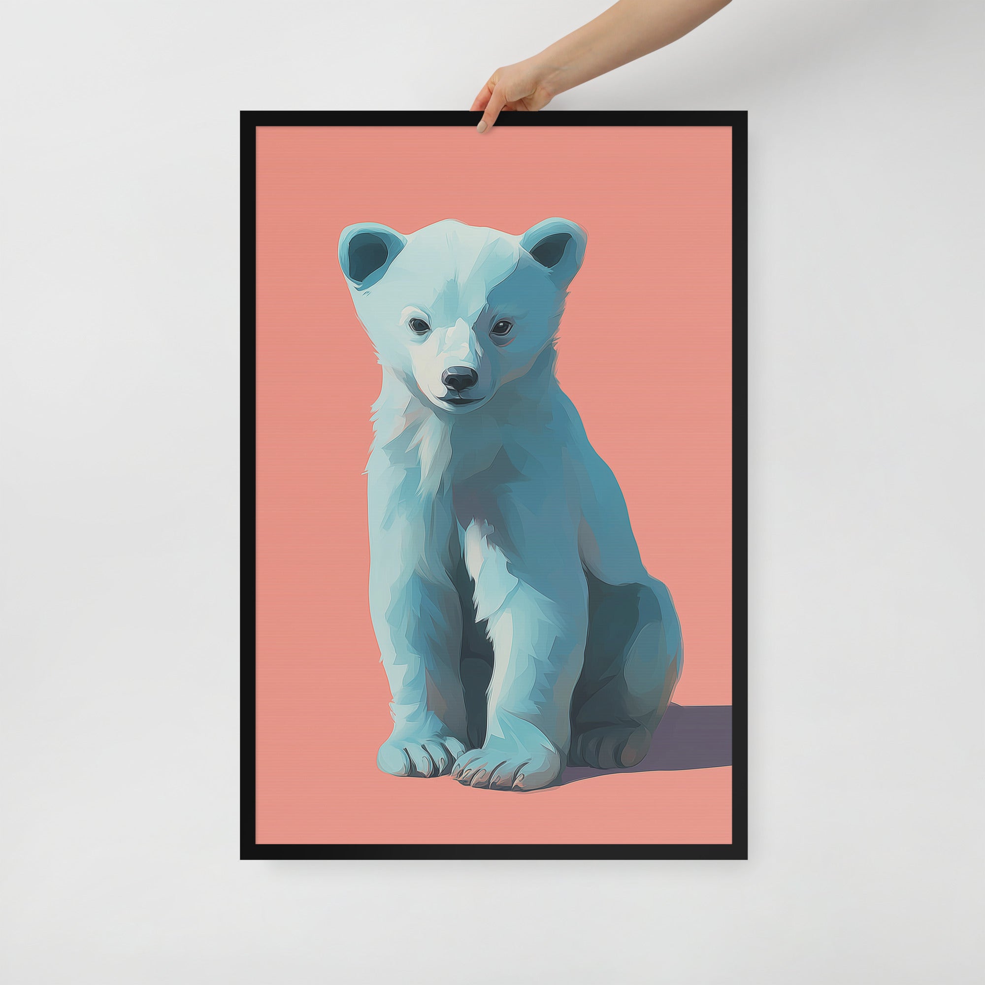 Young Bear Sits - Coral Series - Framed Nursery Wall Art