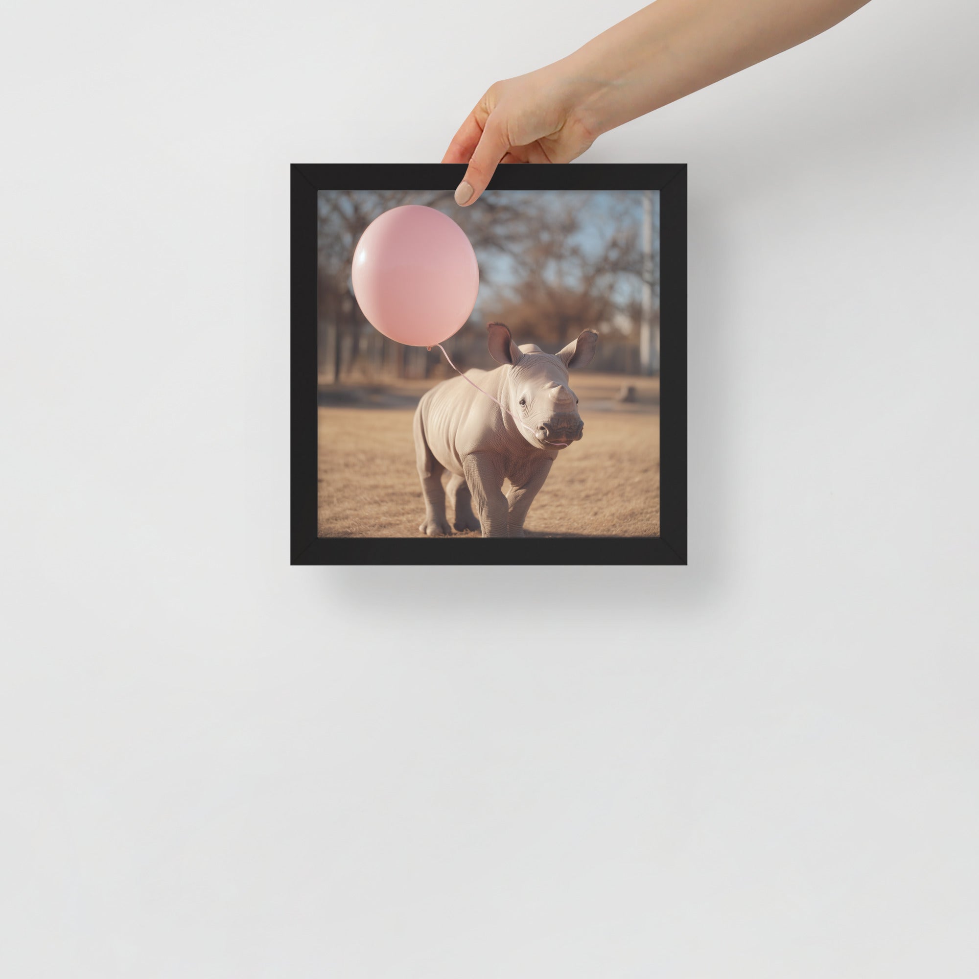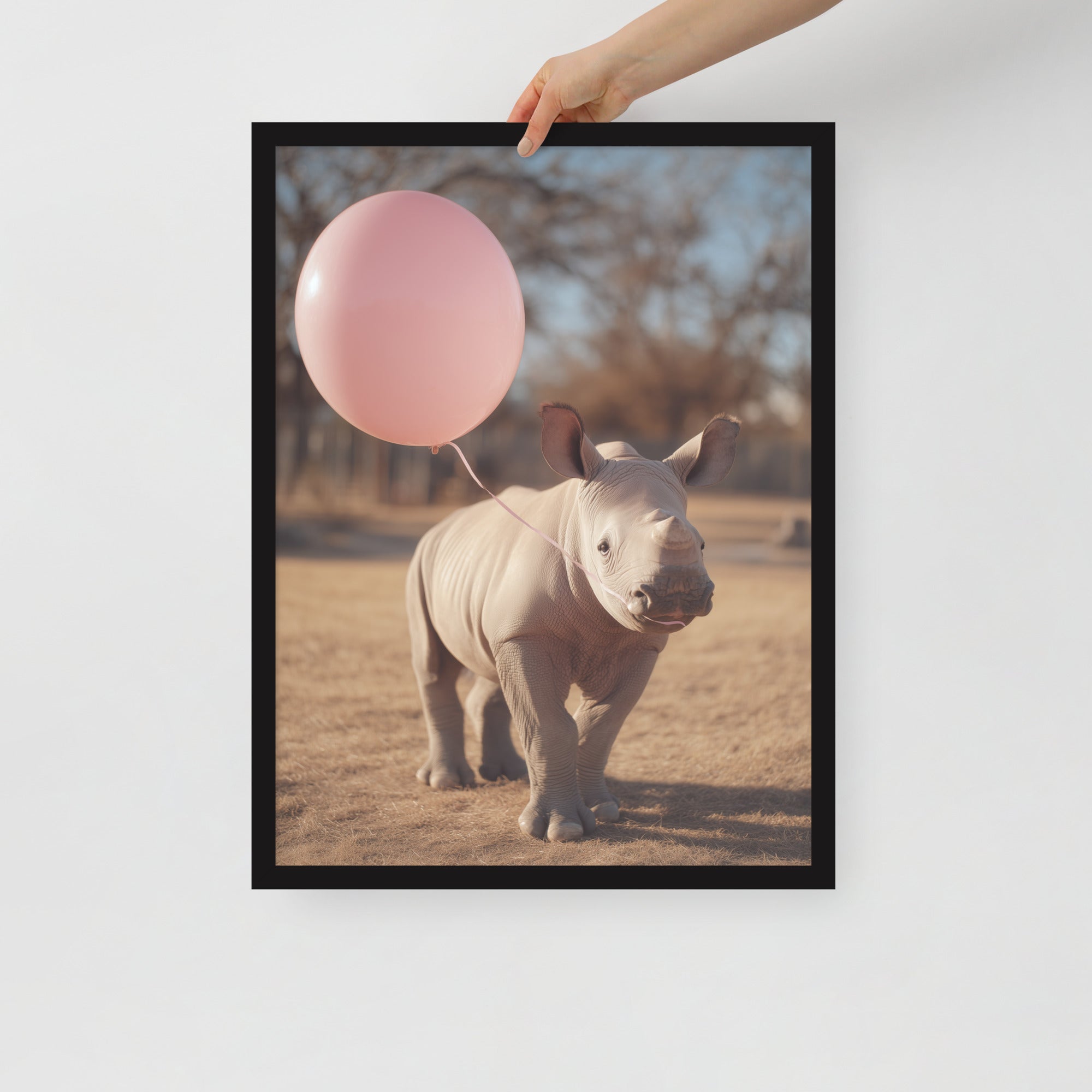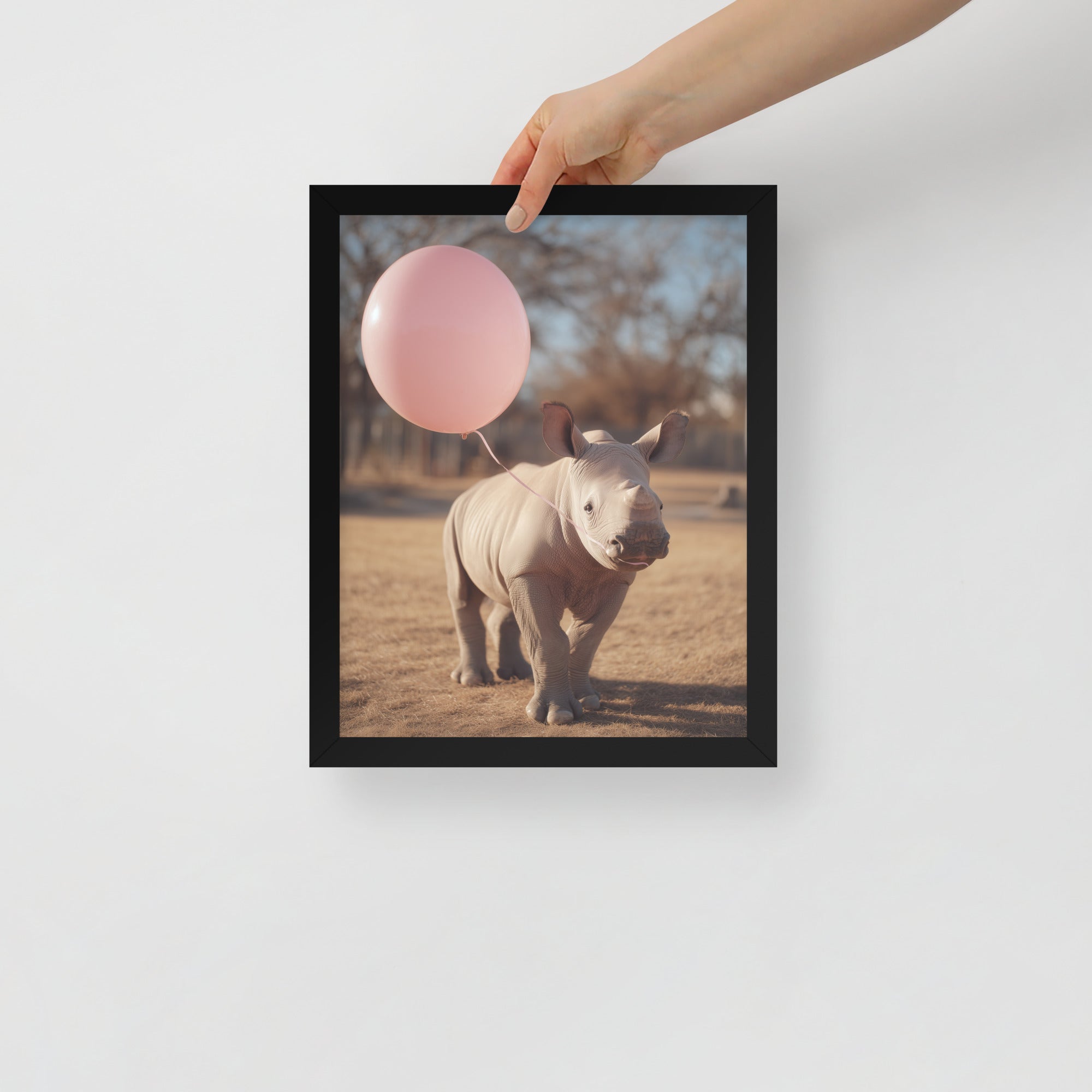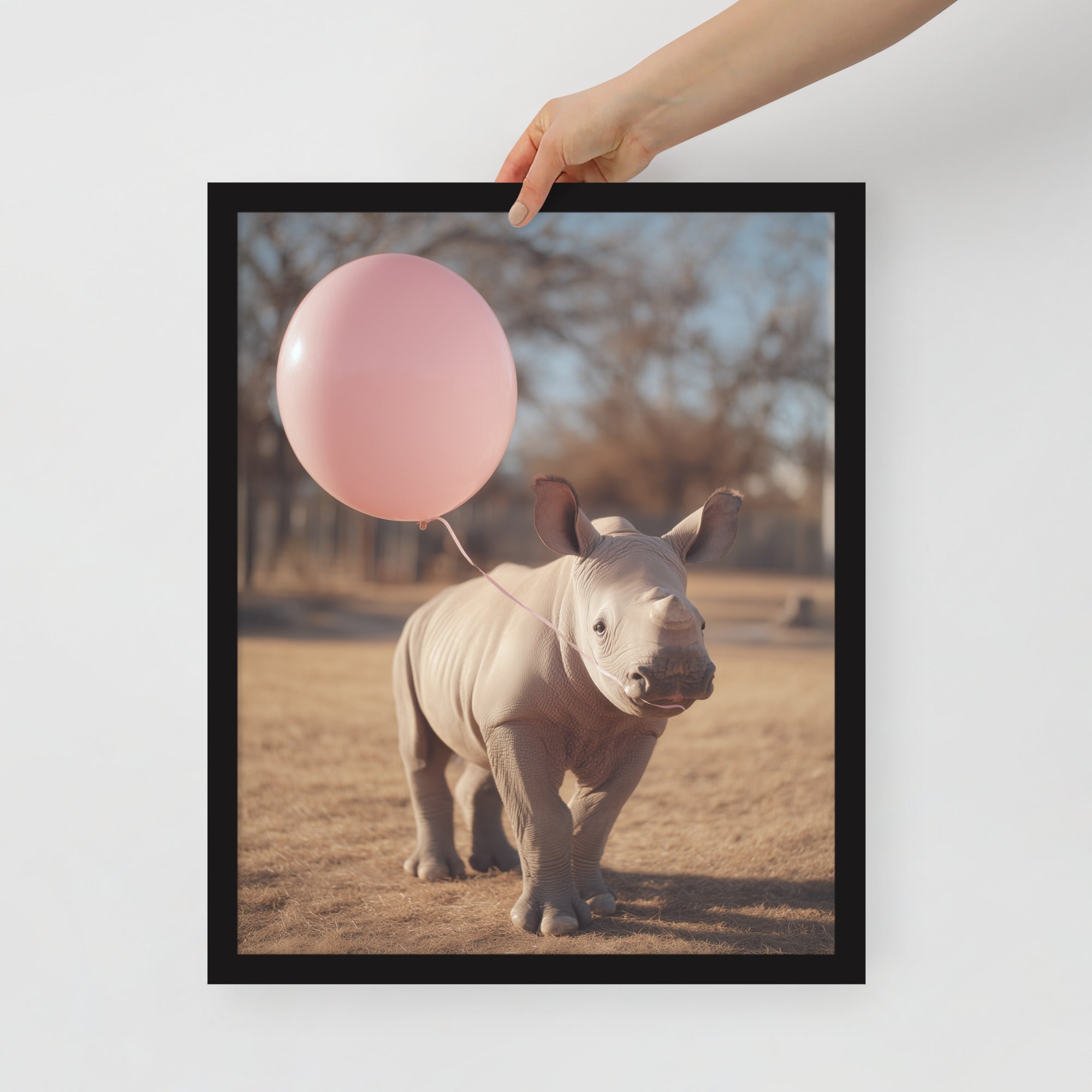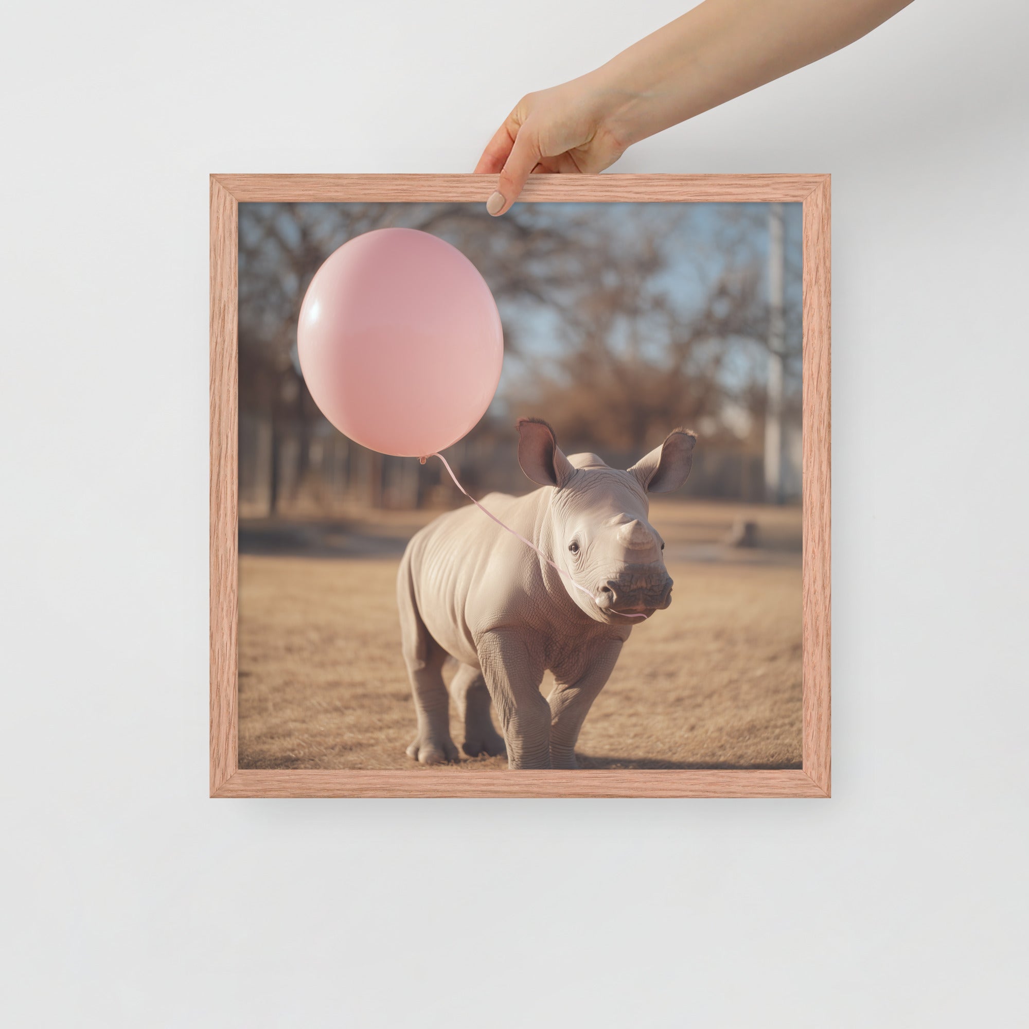 Young Rhino & Balloon - Framed Nursery Wall Art