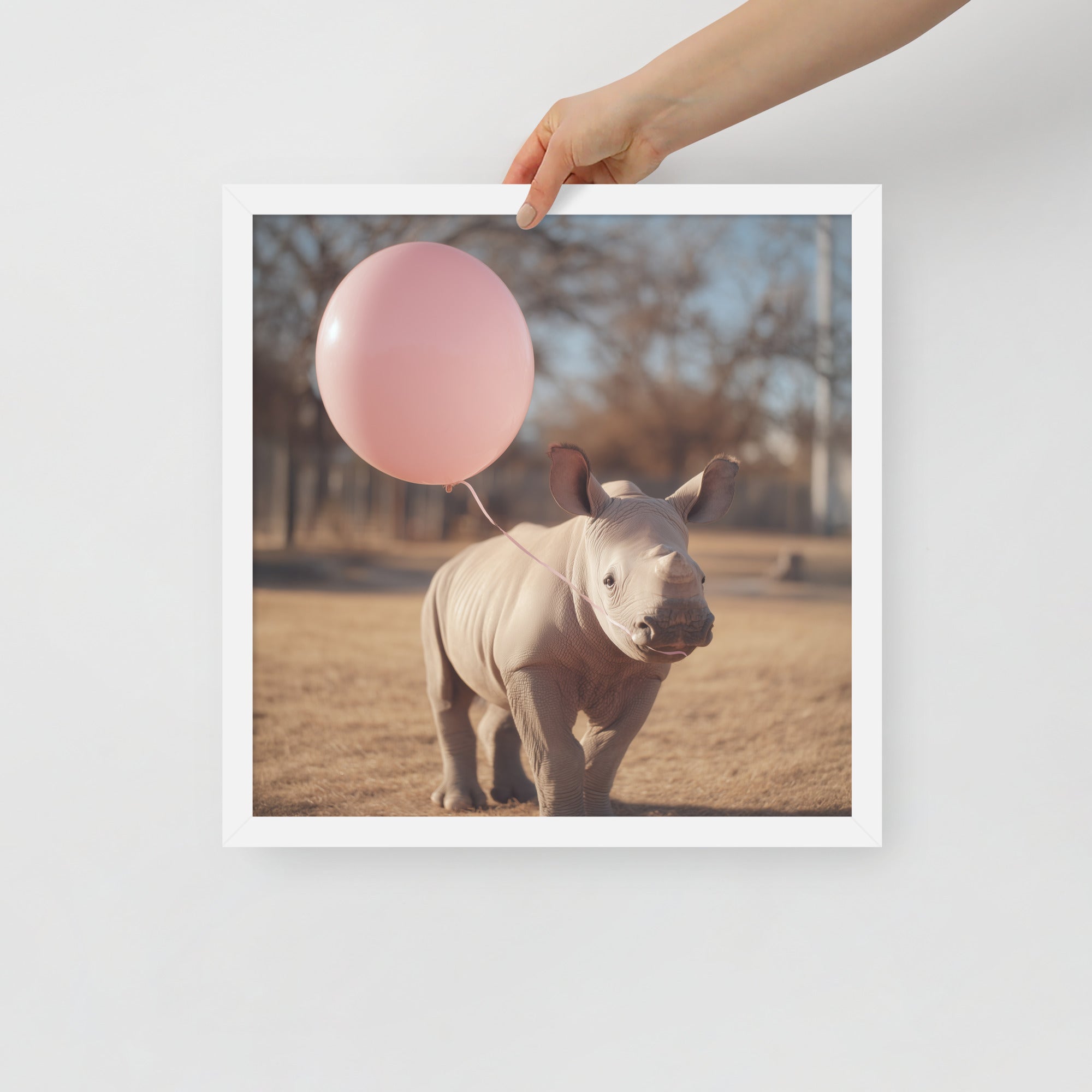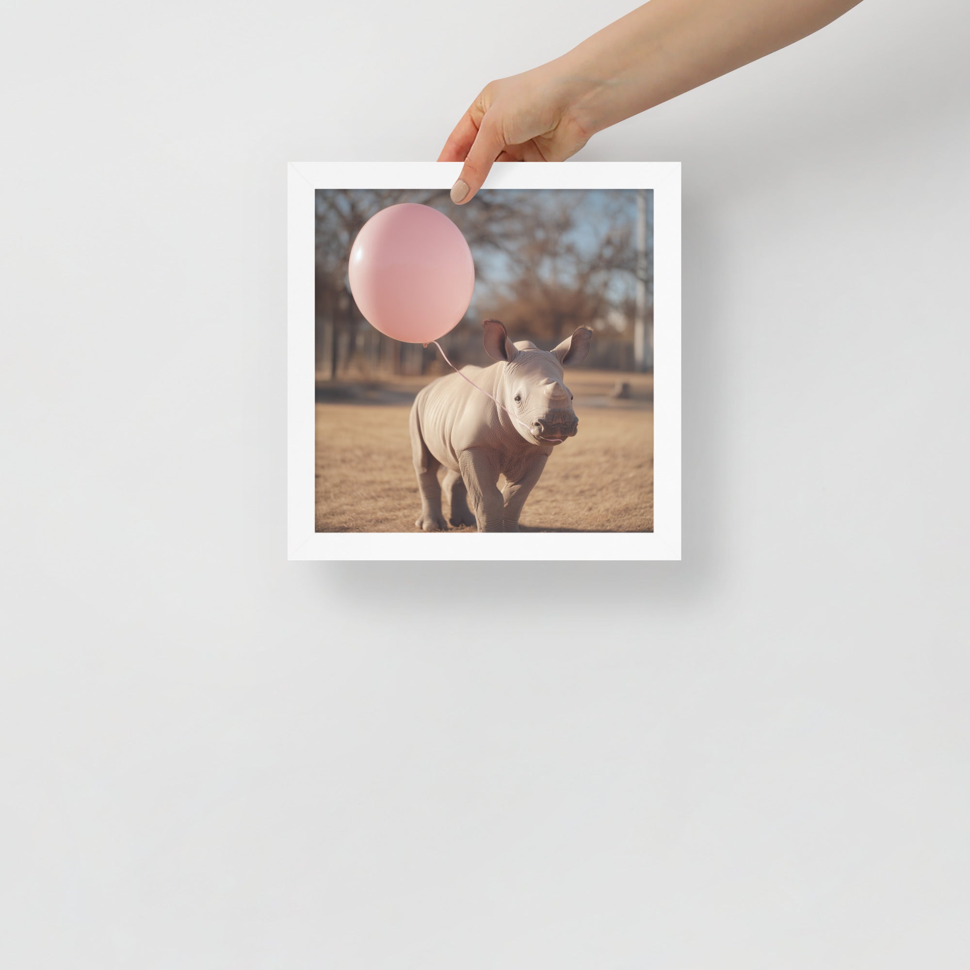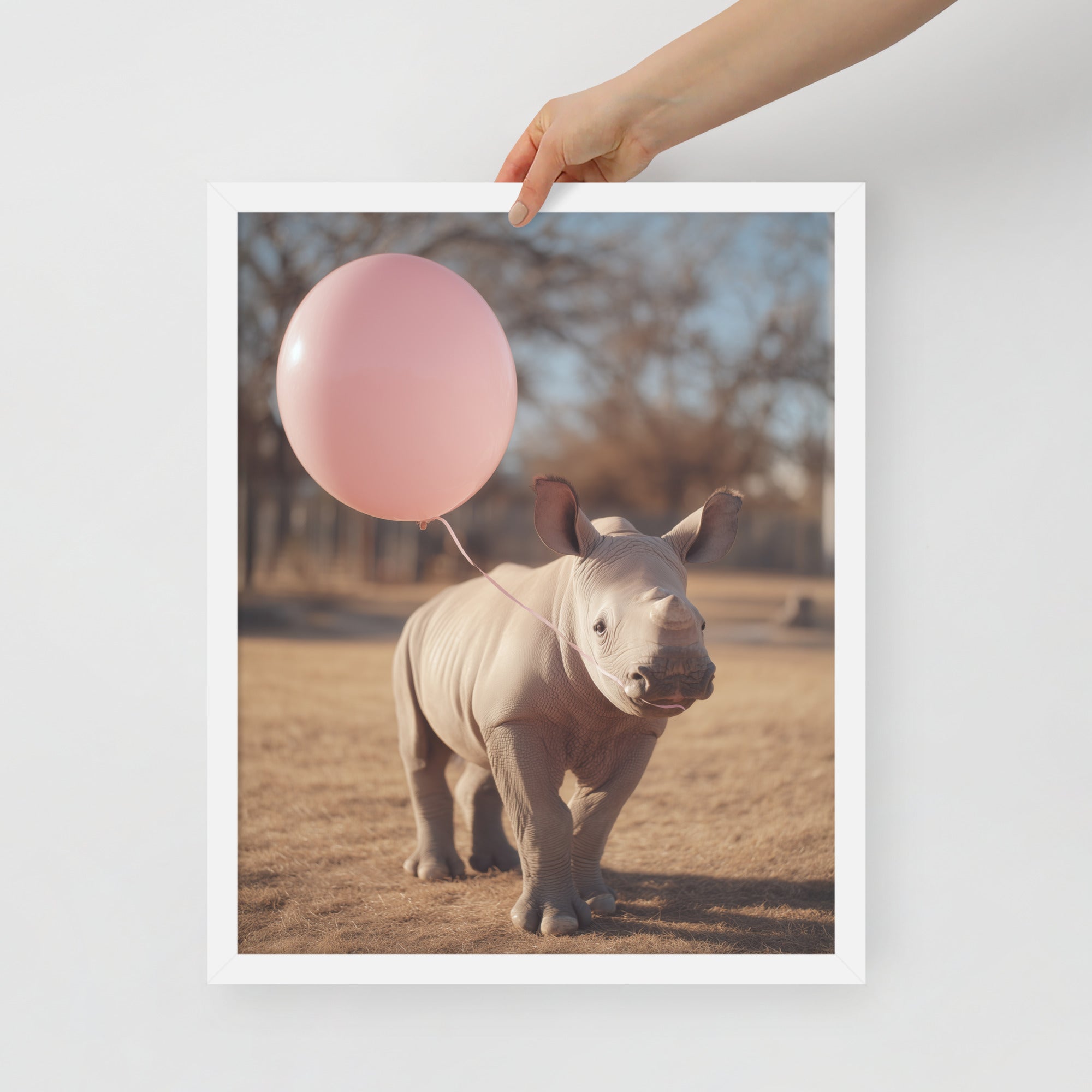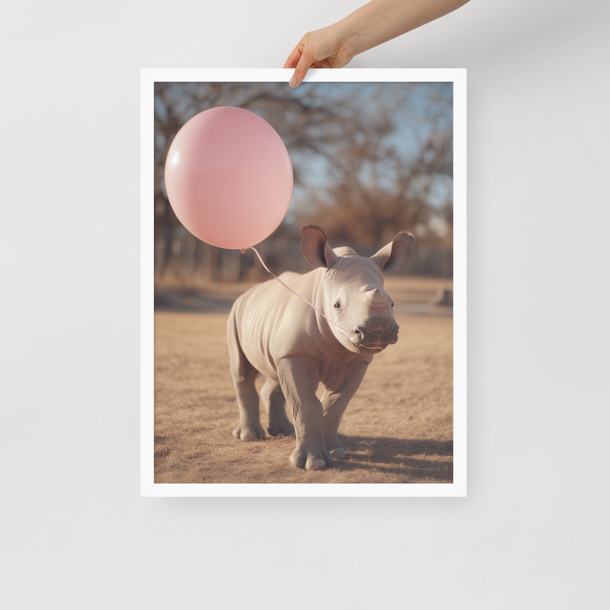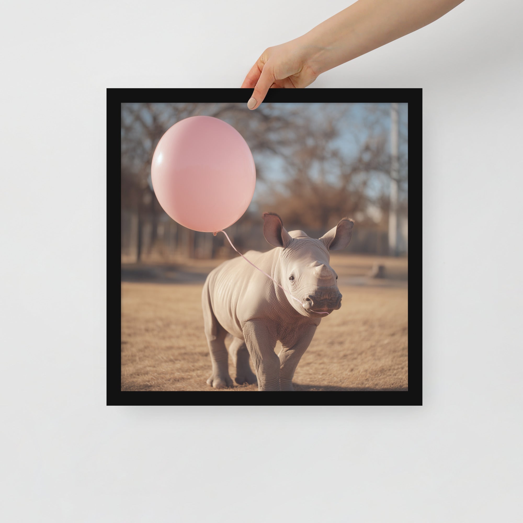 Young Rhino & Balloon - Framed Nursery Wall Art
