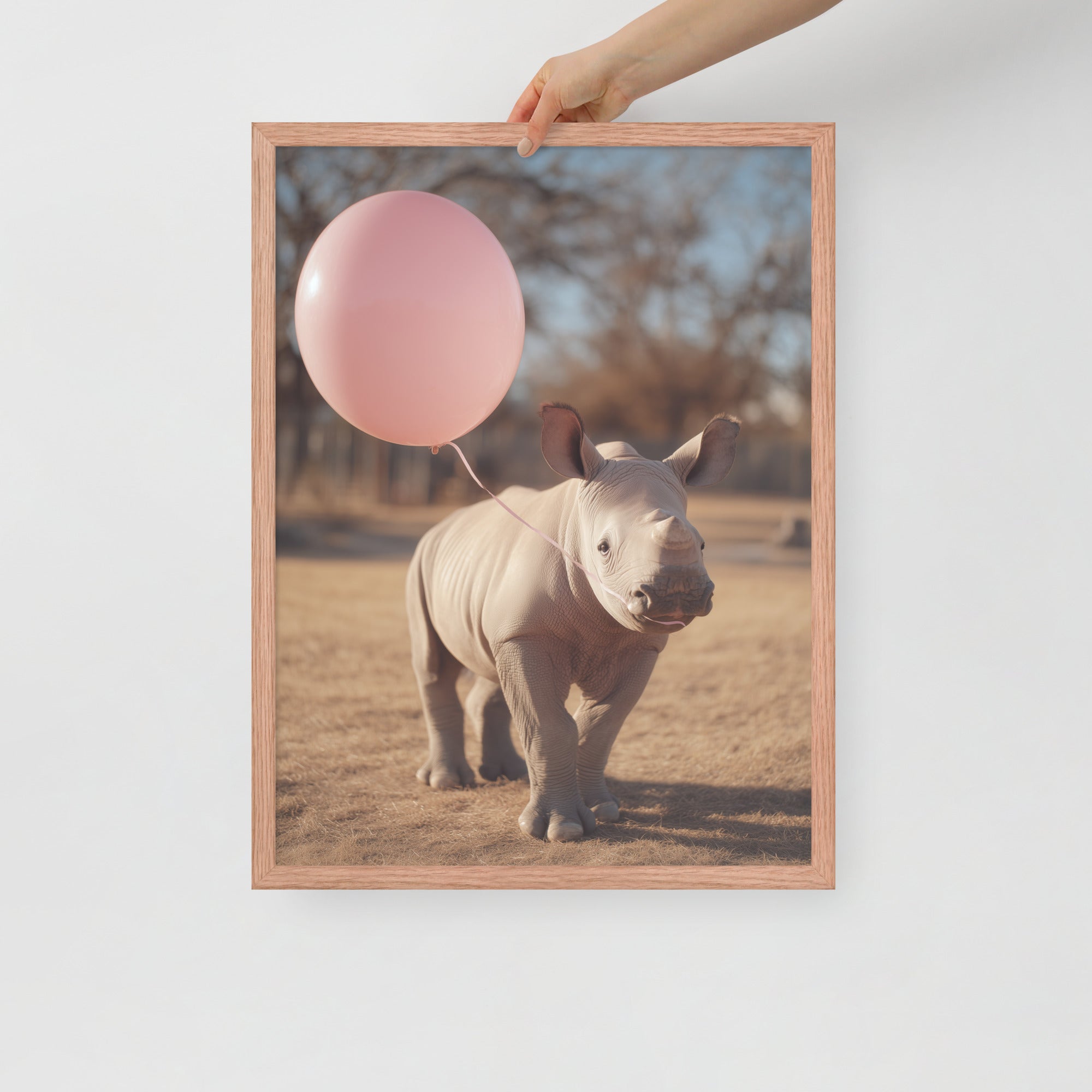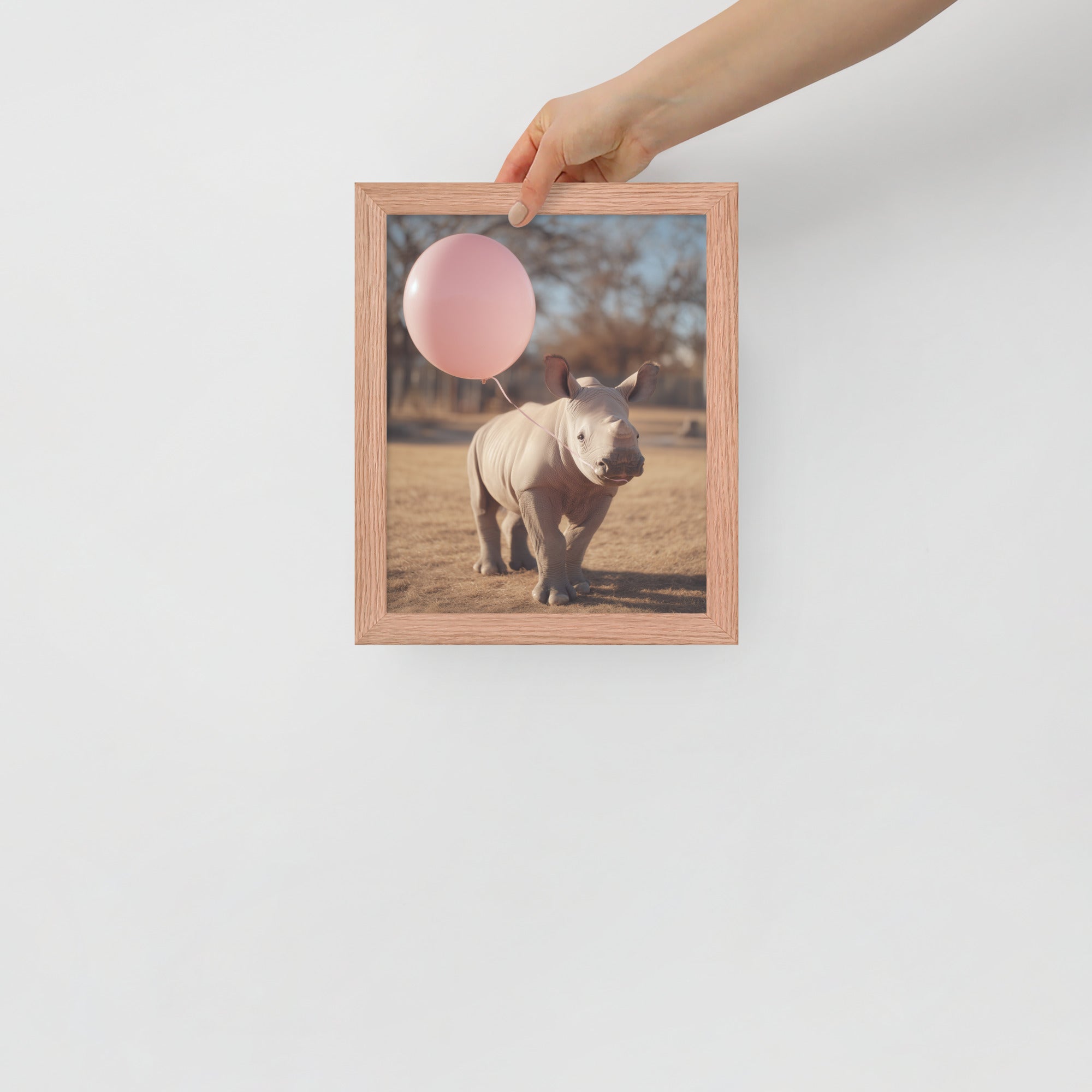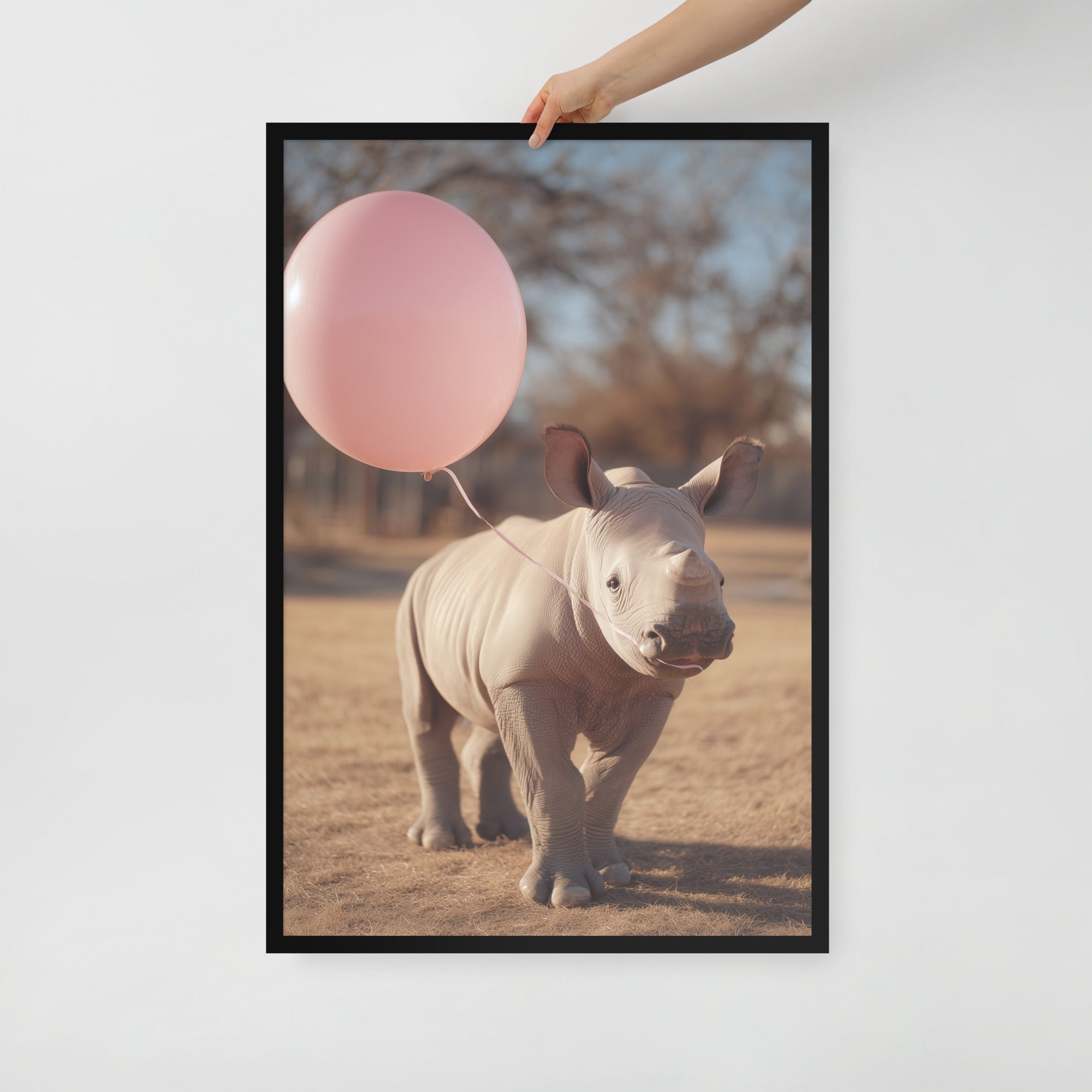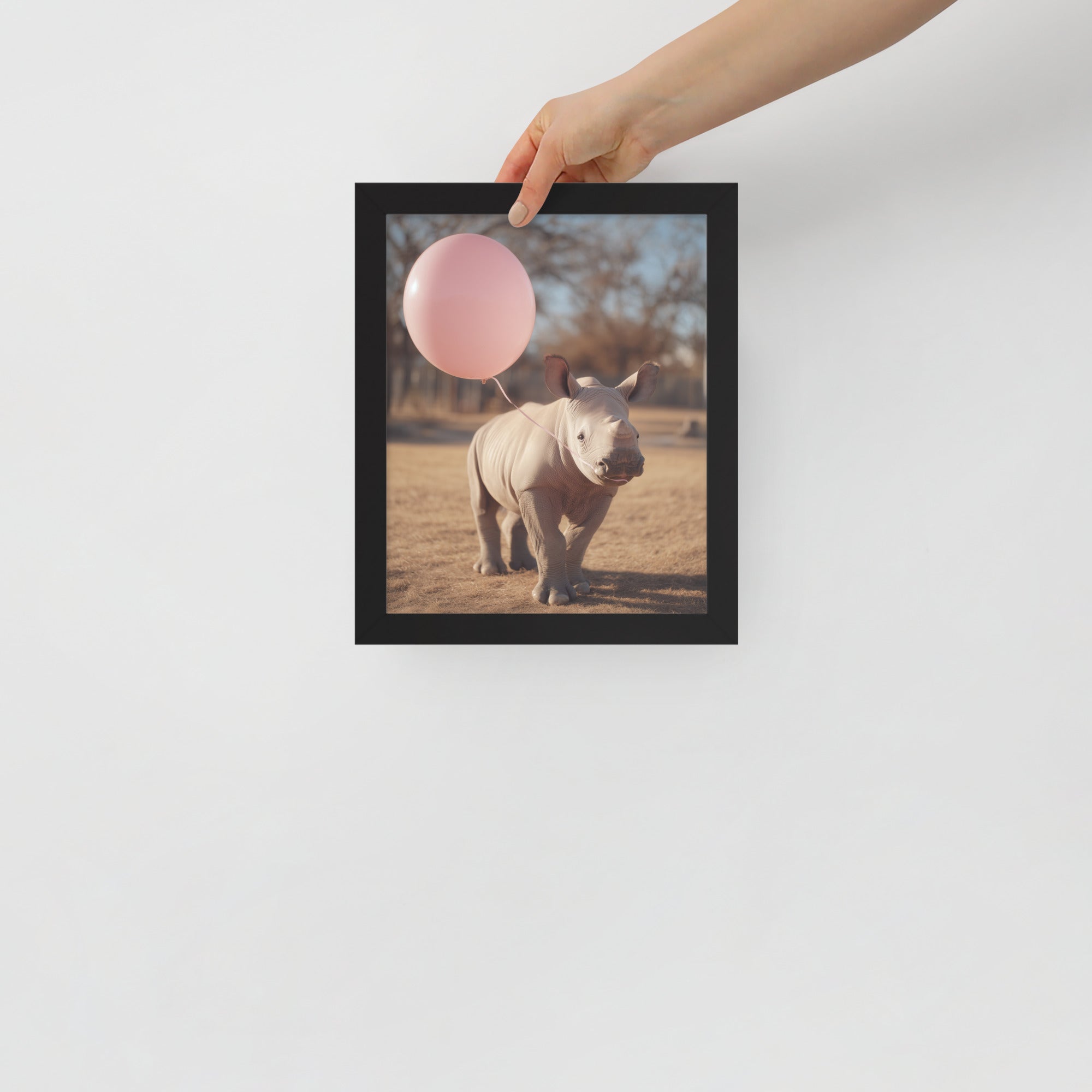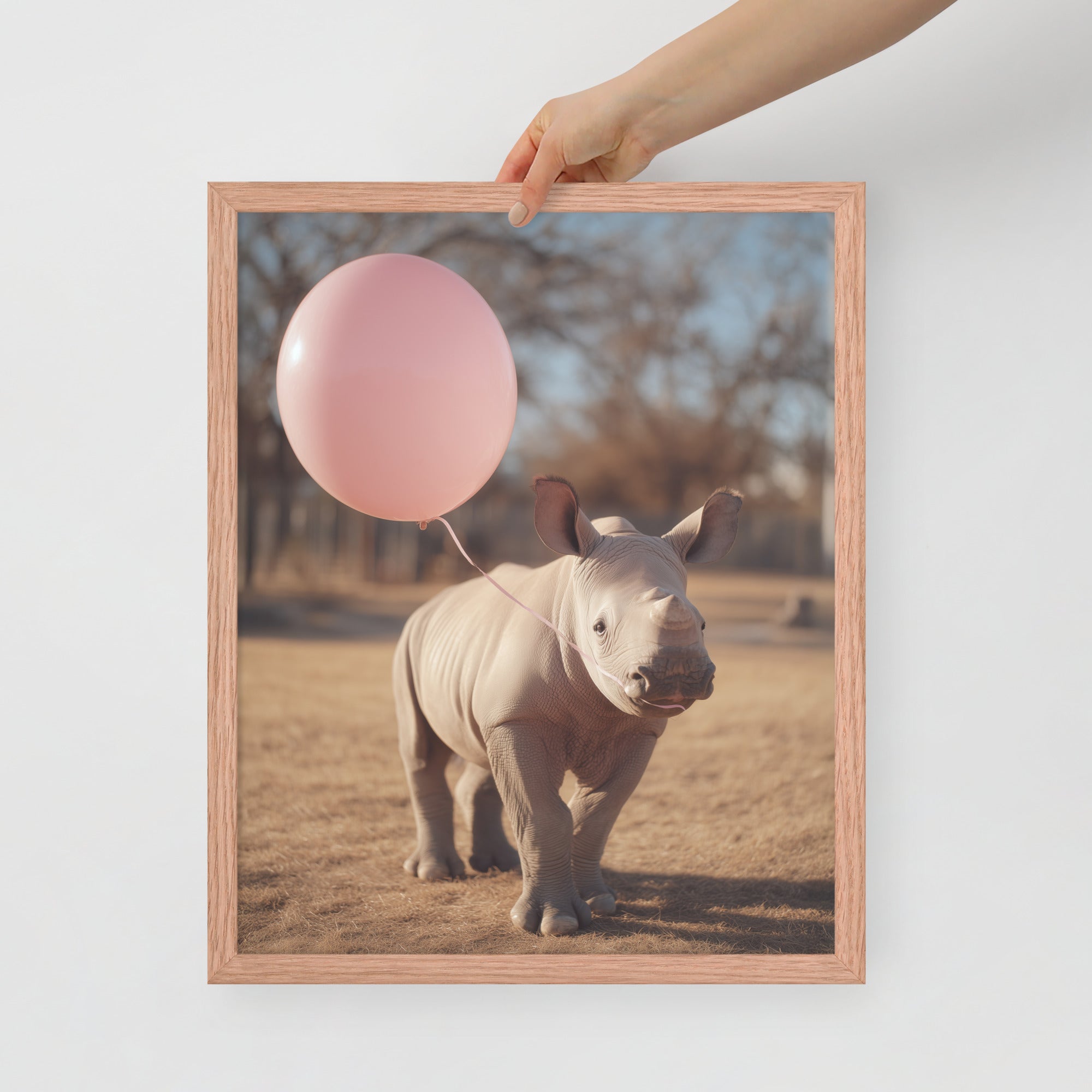 Young Rhino & Balloon - Framed Nursery Wall Art