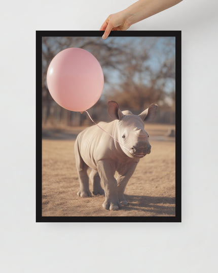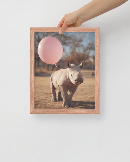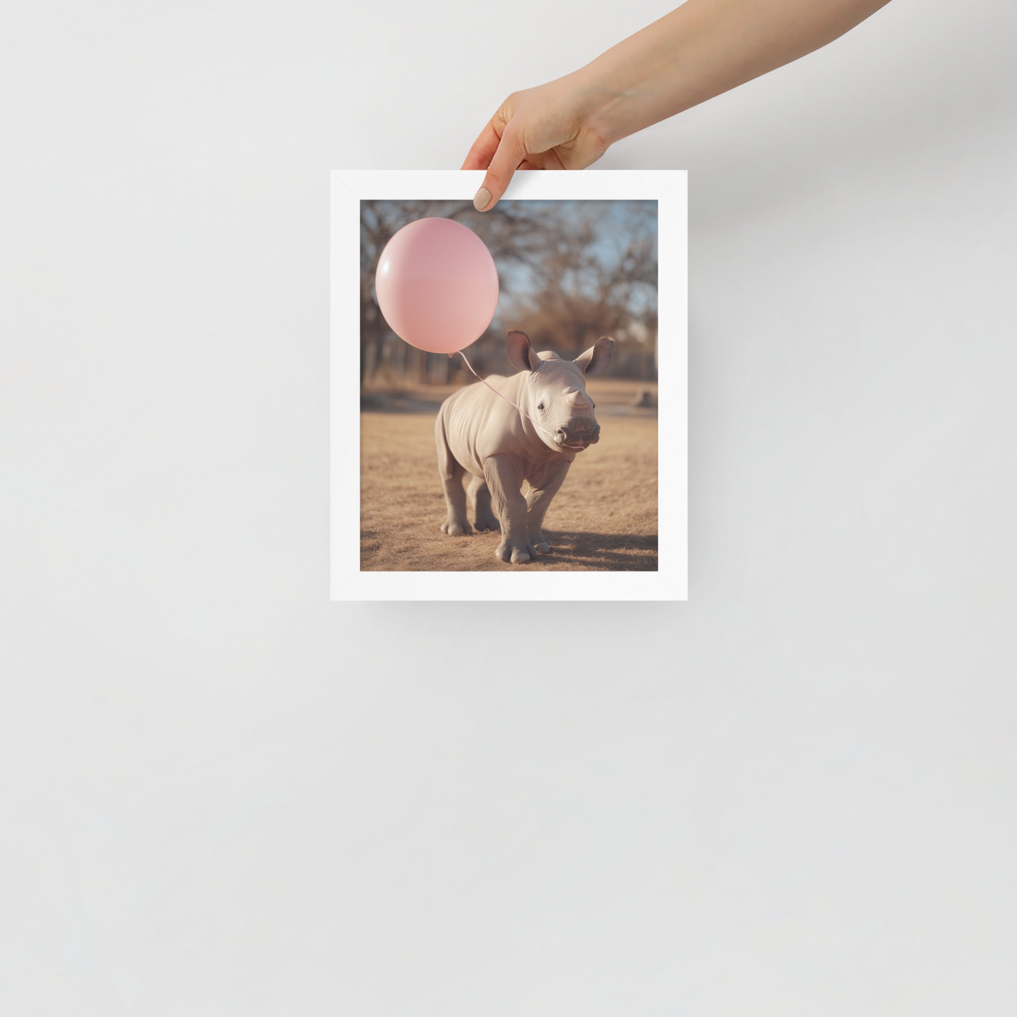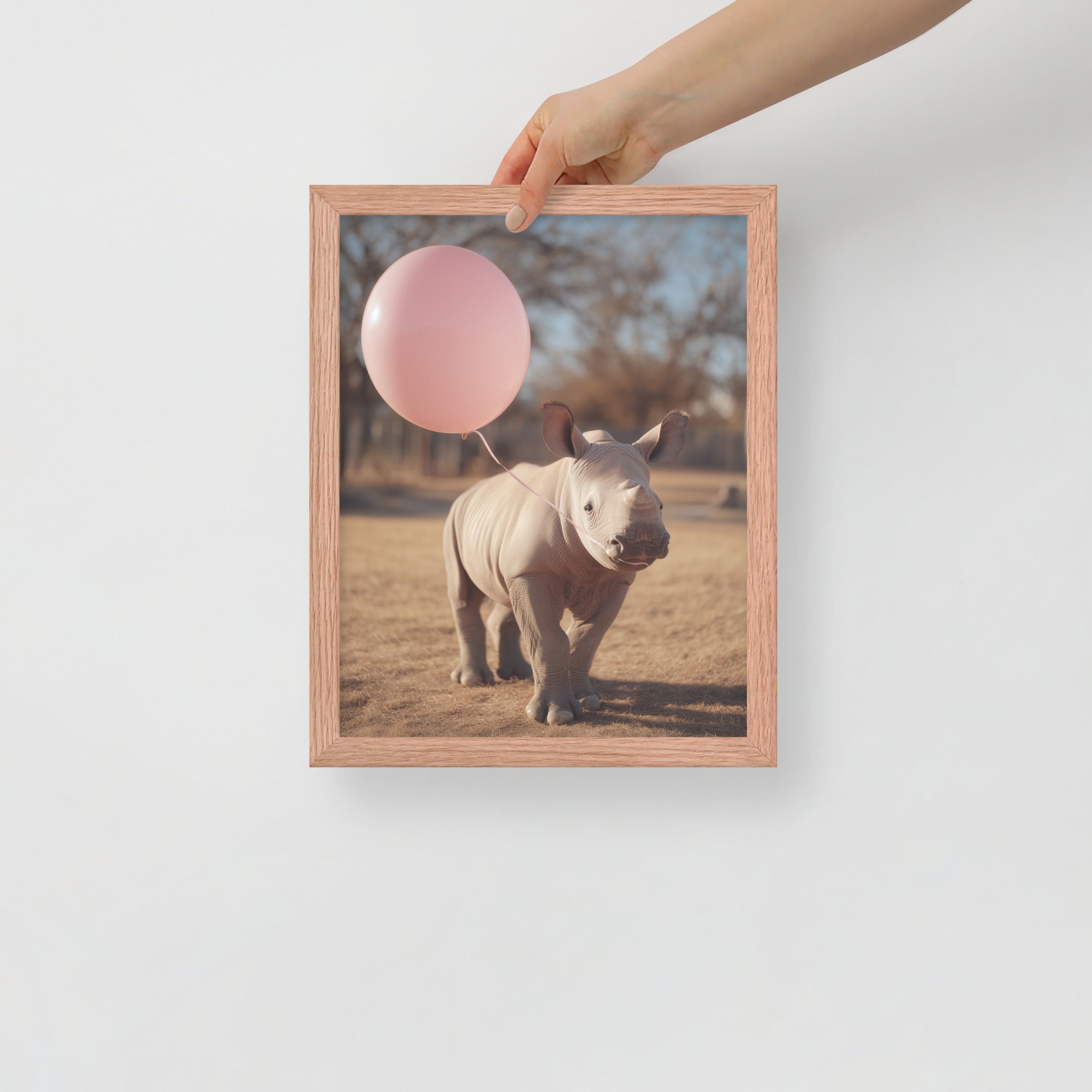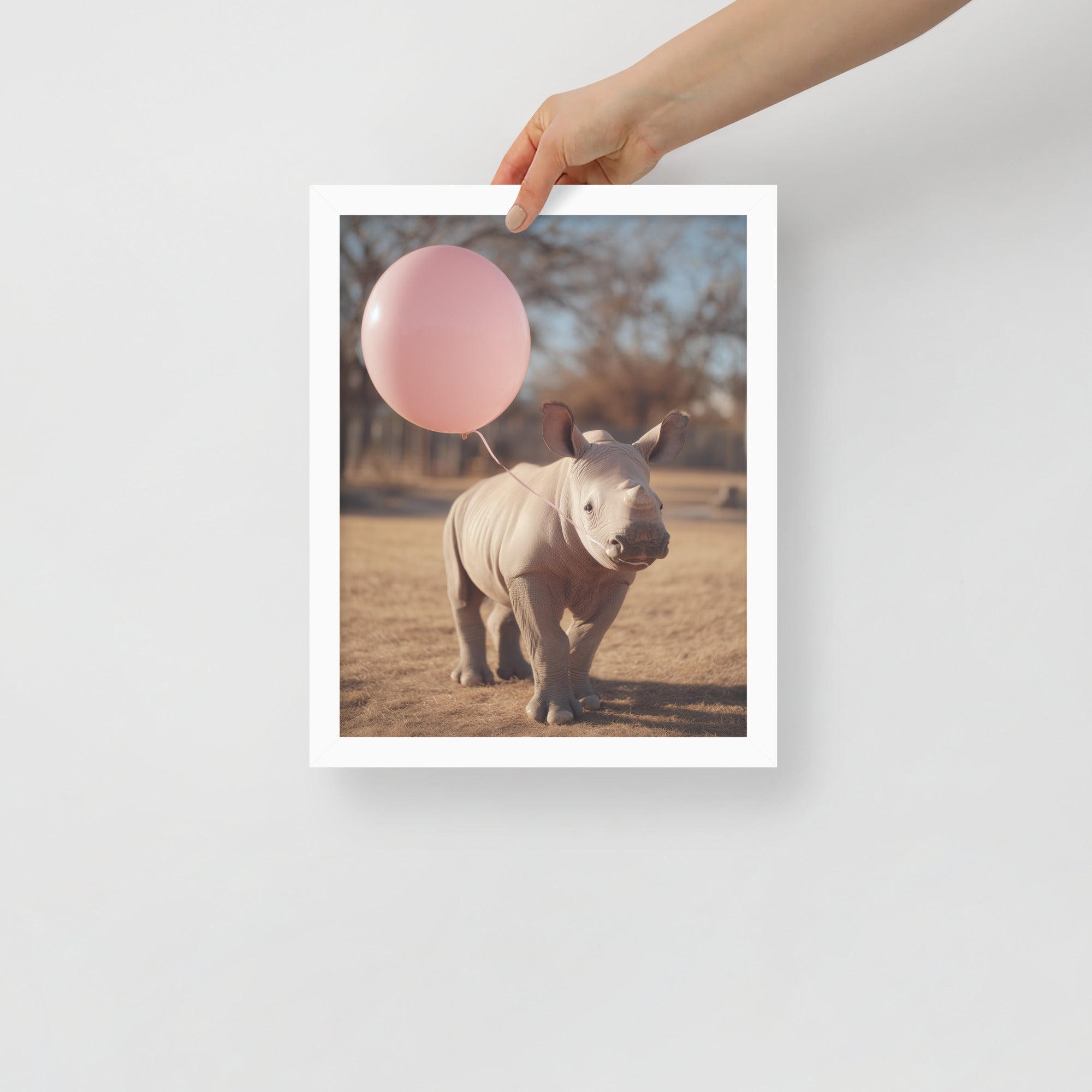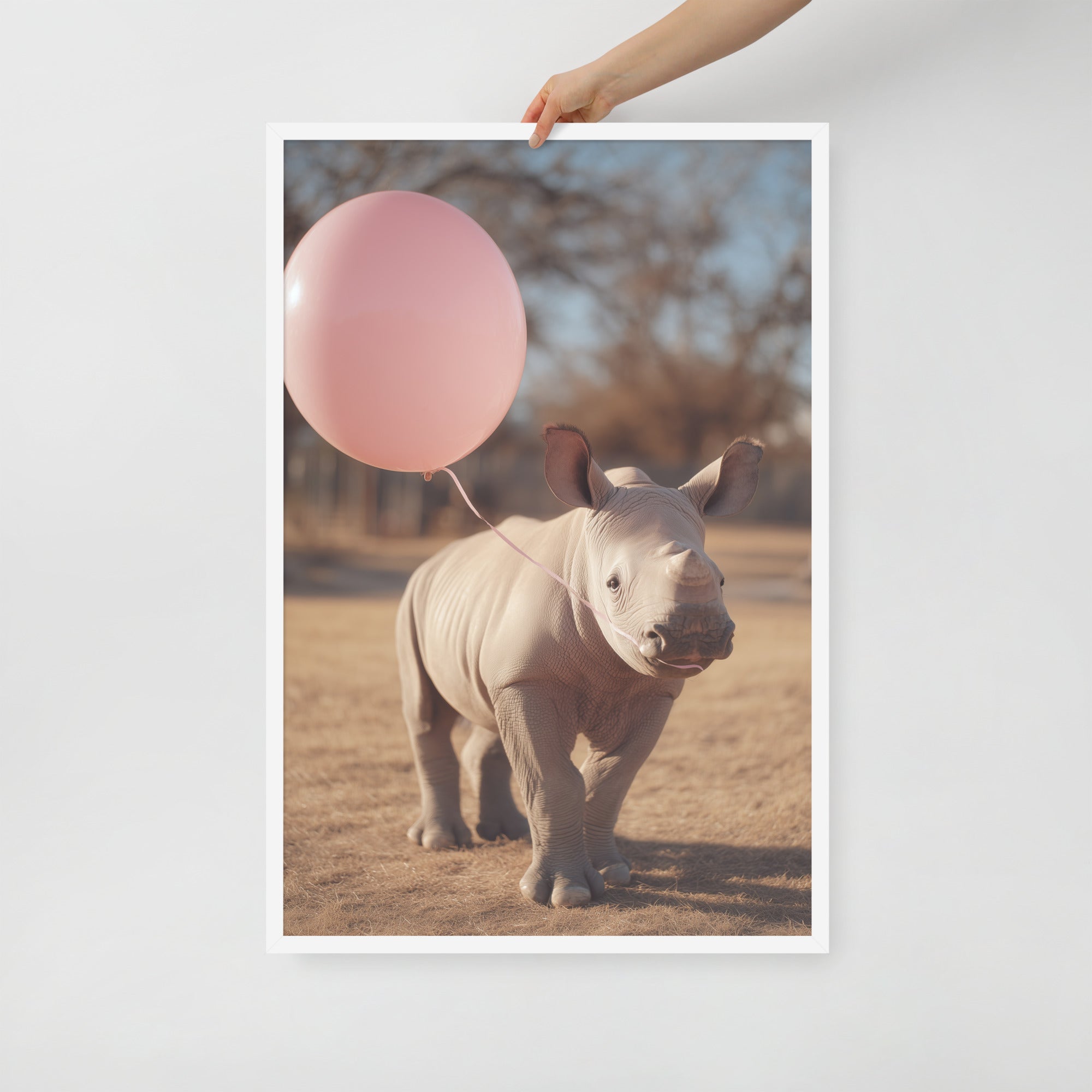 Young Rhino & Balloon - Framed Nursery Wall Art